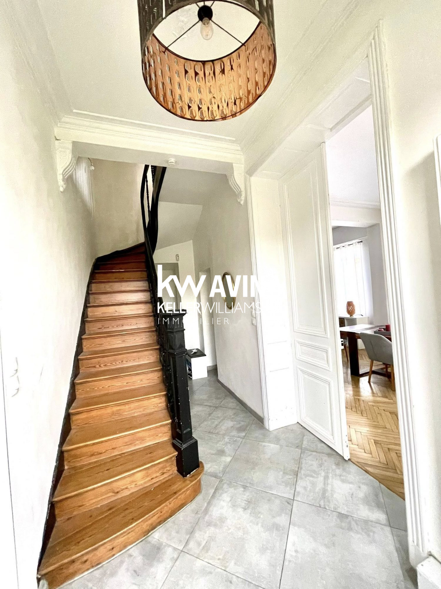 D'un hall d'entrée, un salon, une salle à manger, une grande cuisine de 17 m²...