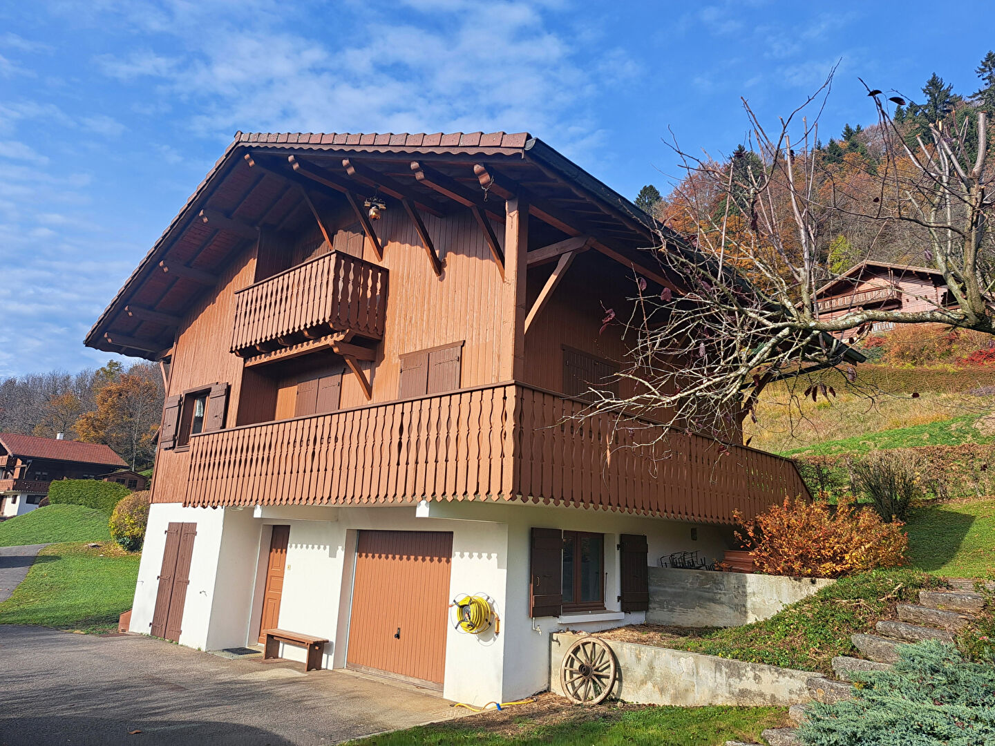 Avec vue dégagée sur les montagnes, ce chalet de 1993 est composé d'une entrée desservant garage, pièce à aménagée (possibilité chambre avec pièce d'eau) . A l'étage : cuisine aménagée, séjour avec poèle à bois et accès balcon, chambre, wc, sal...