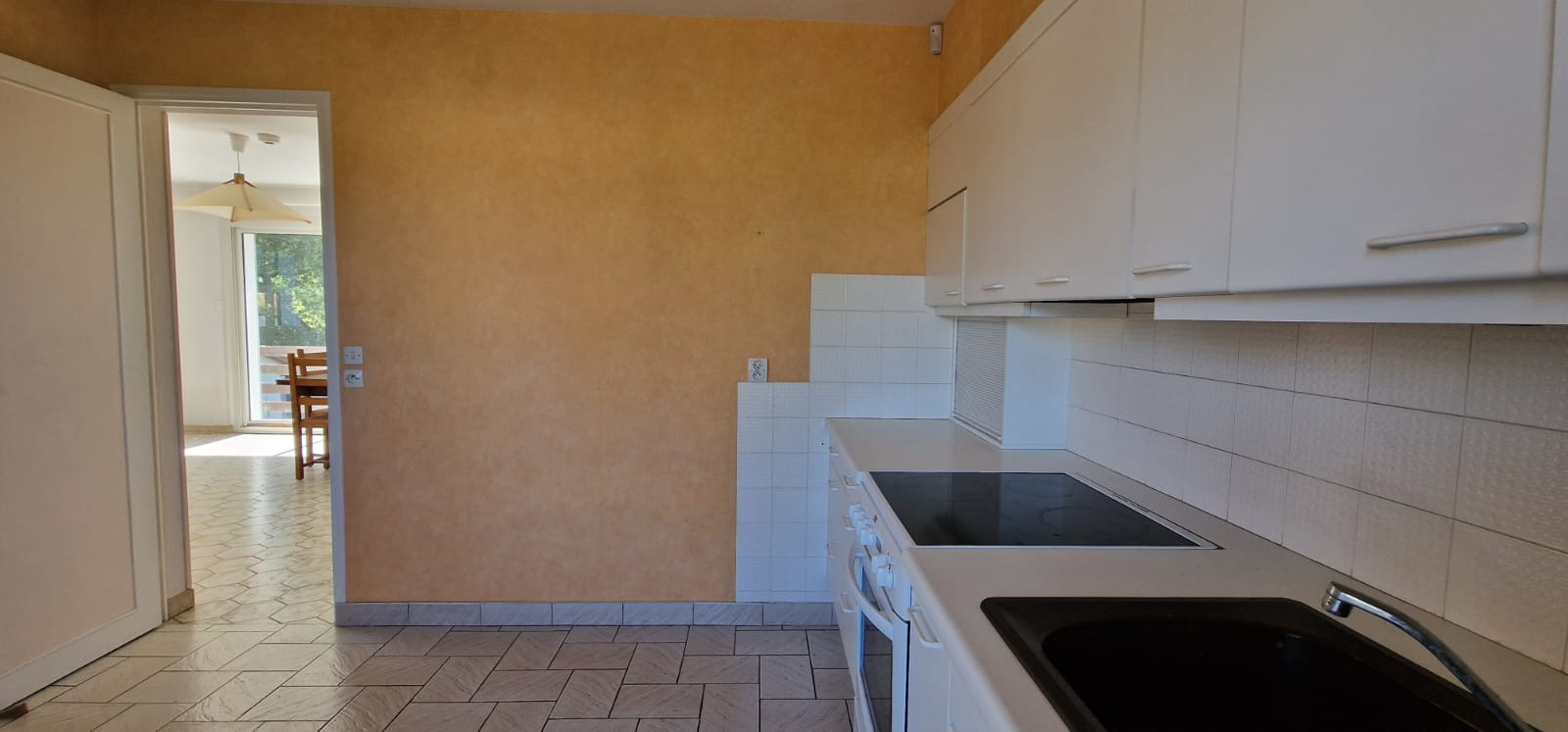 Salon, séjour, cuisine équipée, 3 chambres avec rangement, salle d'eau WC, garage attenant et joli jardin à l'arrière sans vis à vis avec terrasse carrelée.