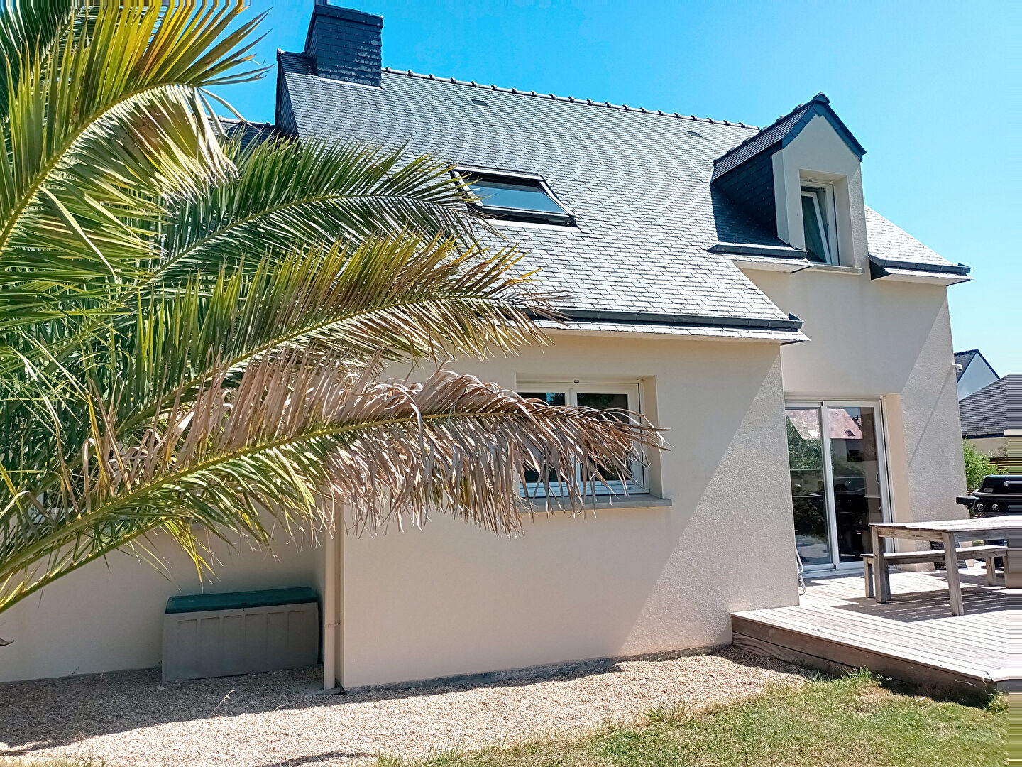 SAINTE-ANNE-d'AURAY, centre-ville, MAISON contemporaine sur son jardin d'environ 500m². Lumineuse et vous offre au rez-de-chaussée : une entrée avec placard, un salon-séjour équipé d'un poêle ouvrant sur le jardin, une cuisine ouverte, un wc,...