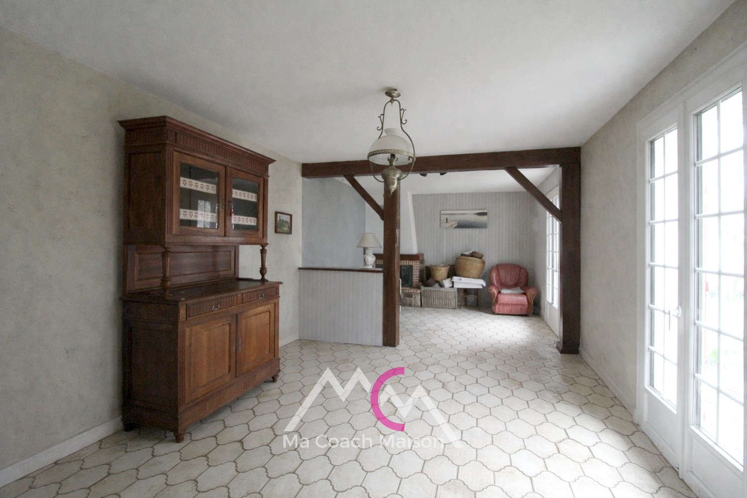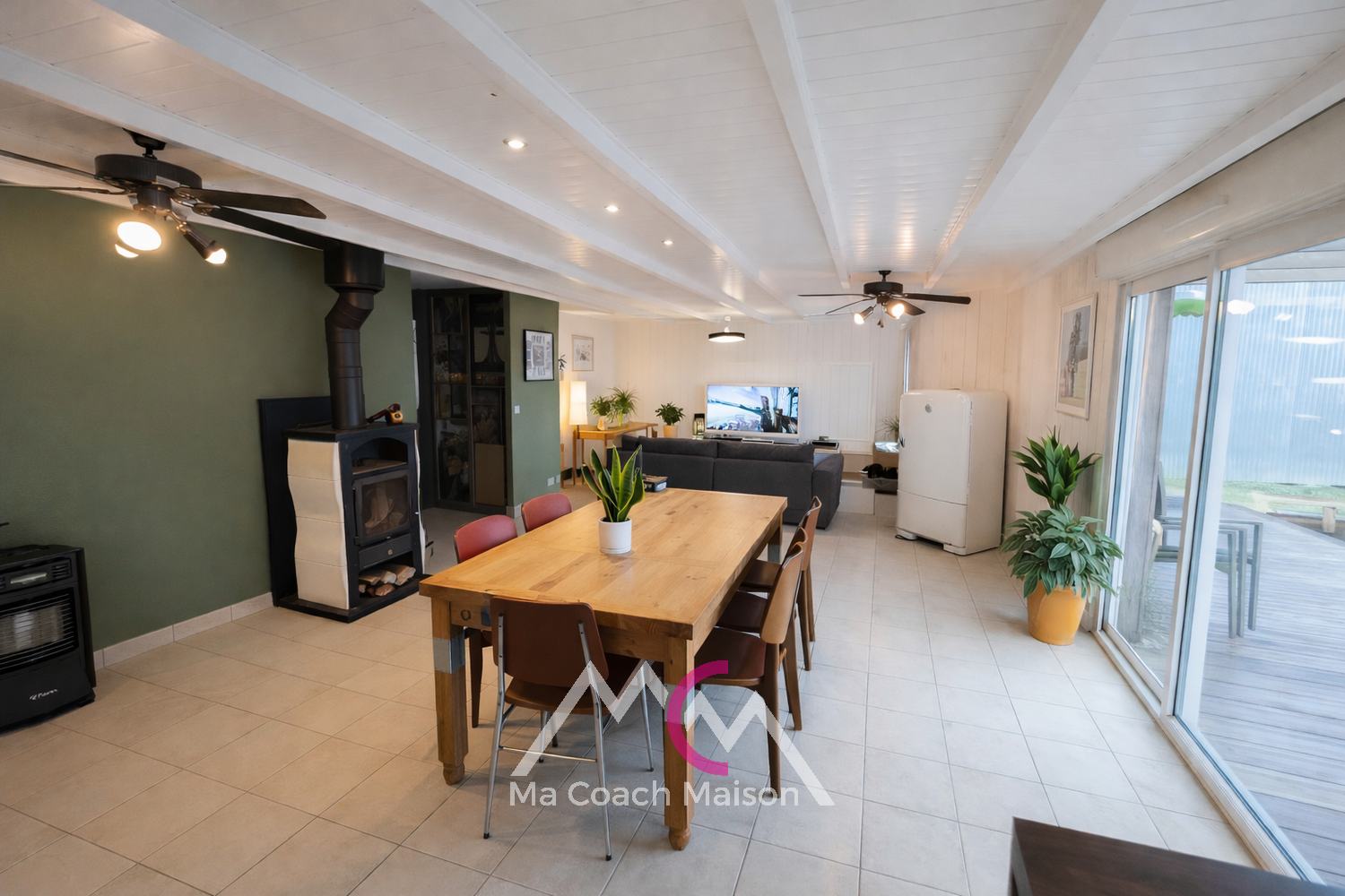 Au coeur du bourg, cette maison offre une vie de plain-pied et de beaux volumes, idéale pour une famille ou retraités souhaitant tout faire à pied.