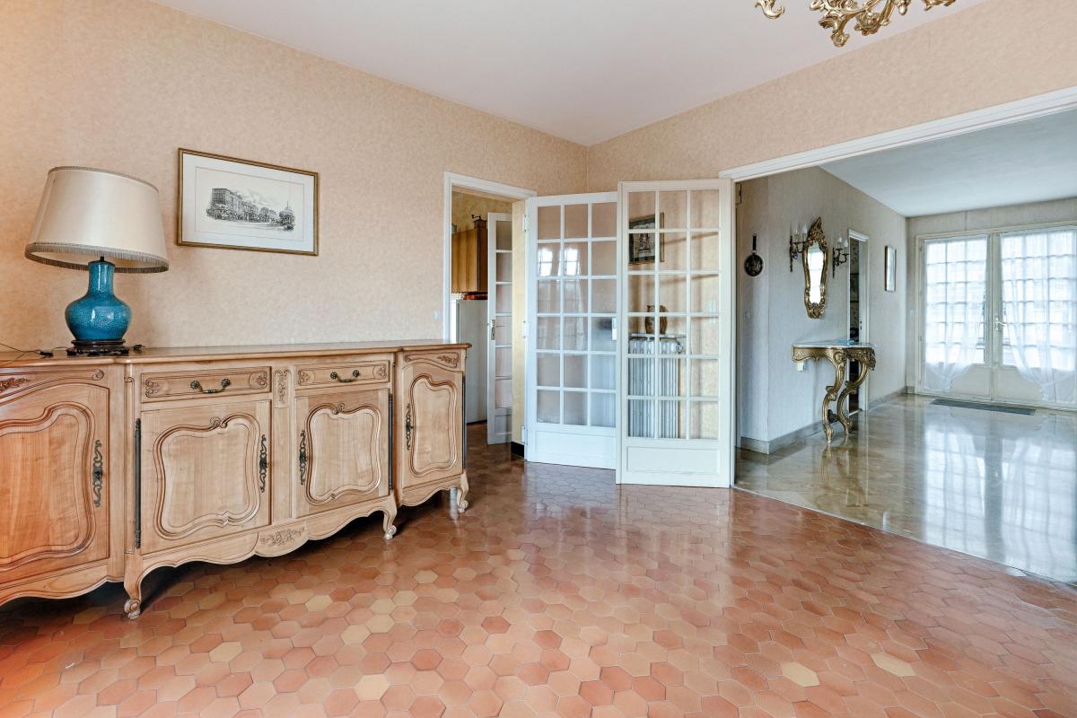Maison traditionnelle des années 70 sur trois niveaux, comprenant au rez-de-chaussée un hall d'entrée desservant salle de séjour avec cheminée, cuisine attenante (possibilité d'ouverture), accès à la terrasse sur laquelle on peut déjeuner. Au même ni...