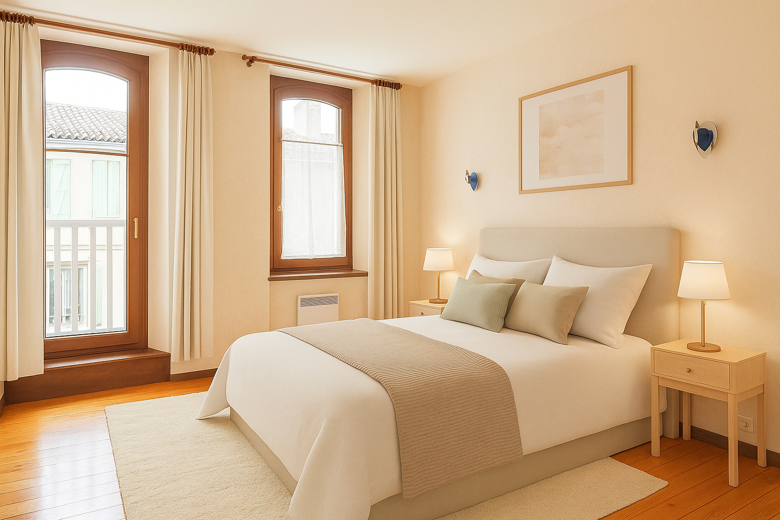 Comprenant : entrée, 3 chambres lumineuses, une salle d'eau avec douche à l'italienne, cuisine équipée séparée du salon/séjour et WC indépendant.