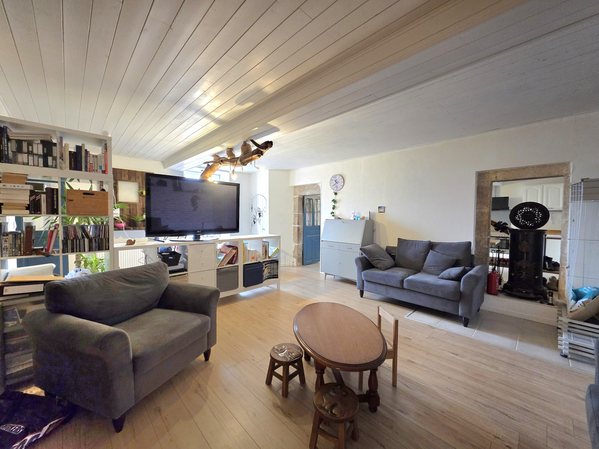 En rez-de-chaussée, la maison s'ouvre sur une...