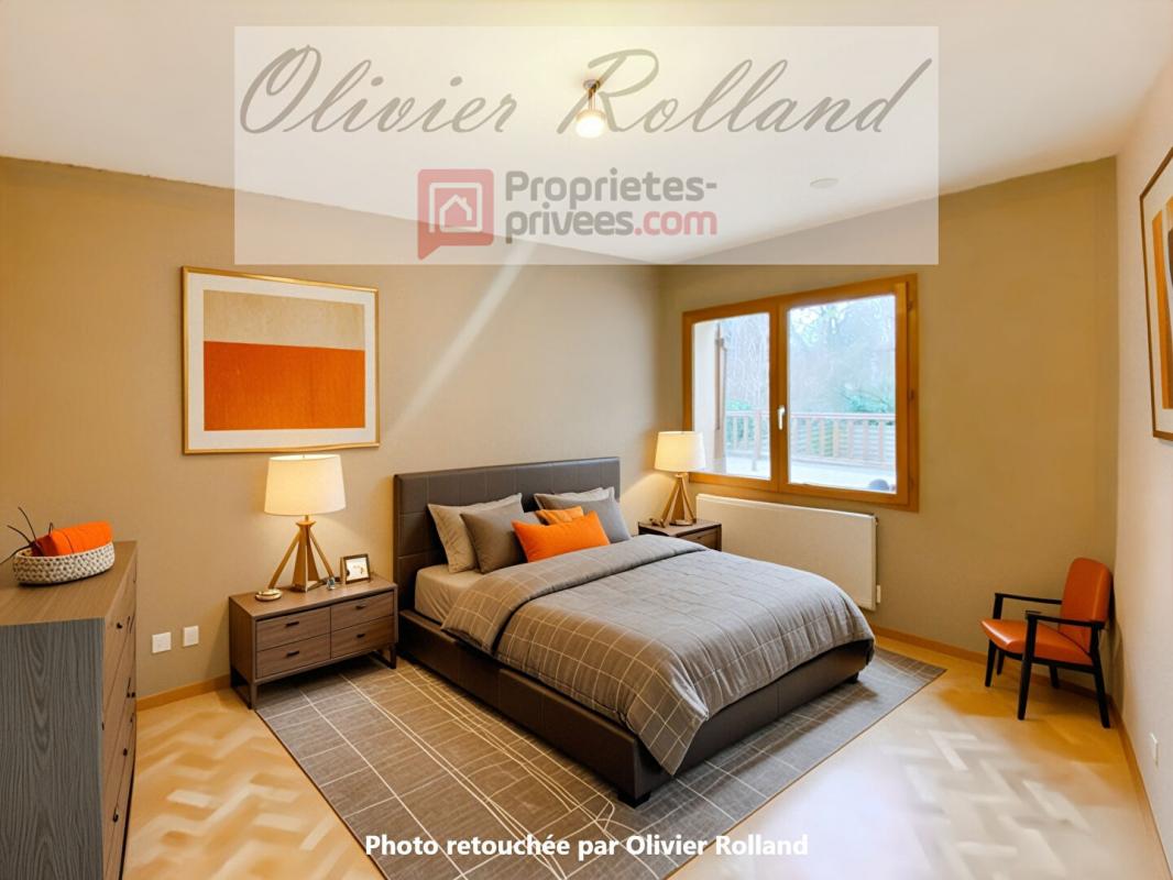 Au Rdc Salon-Séjour de 30 m² avec cheminée, deux chambres, cuisine aménagée et équipée, arrière-cuisine, salle de bain...