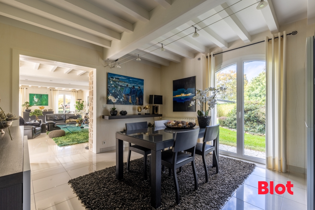 Dans un hameau, superbe maison contemporaine de 2020 avec extension 2024 offrant environ 157m² habitables comprenant une entrée avec un placard, un vaste séjour salon lumineux avec poêle a granulés ouvert sur c...