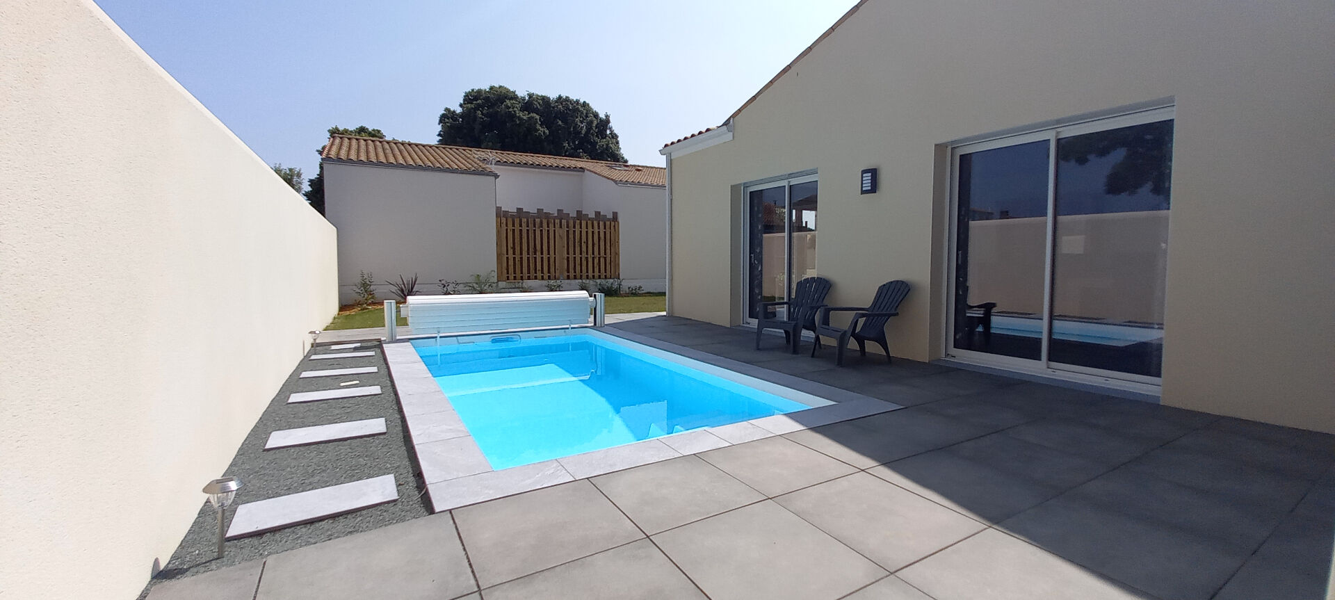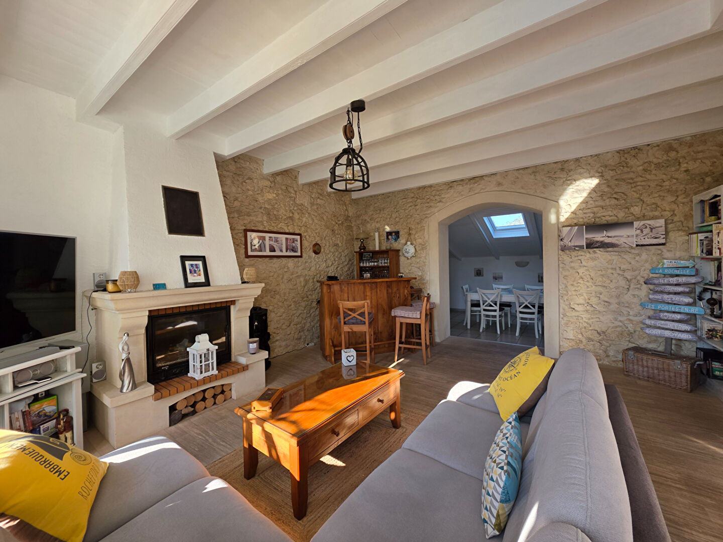 A deux pas des commodités, dans un secteur calme et recherché, belle charentaise rénovée avec gout composée d'un vaste séjour salon, cuisine aménagée et équipée, deux chambres.