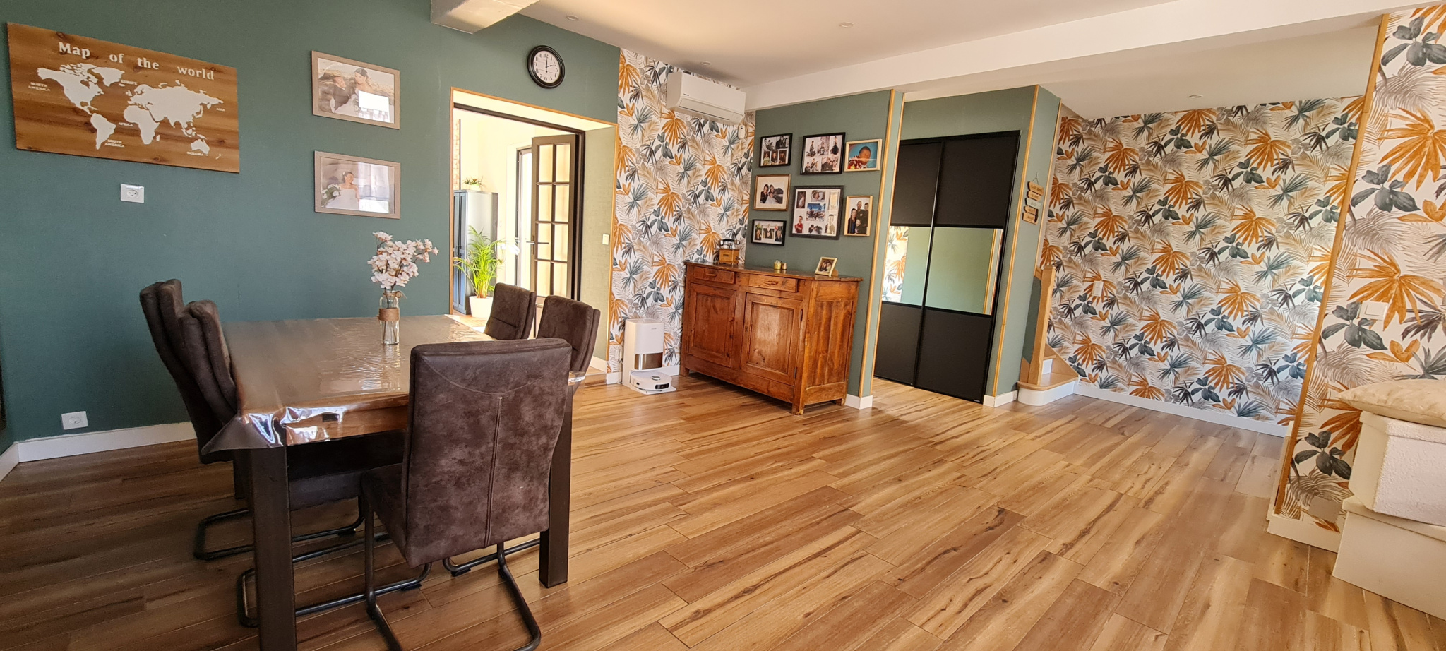 Découvrez cette maison de construction traditionnelle entièrement rénovée aux beaux volumes et au confort moderne située proche du centre-ville de TONNEINS.