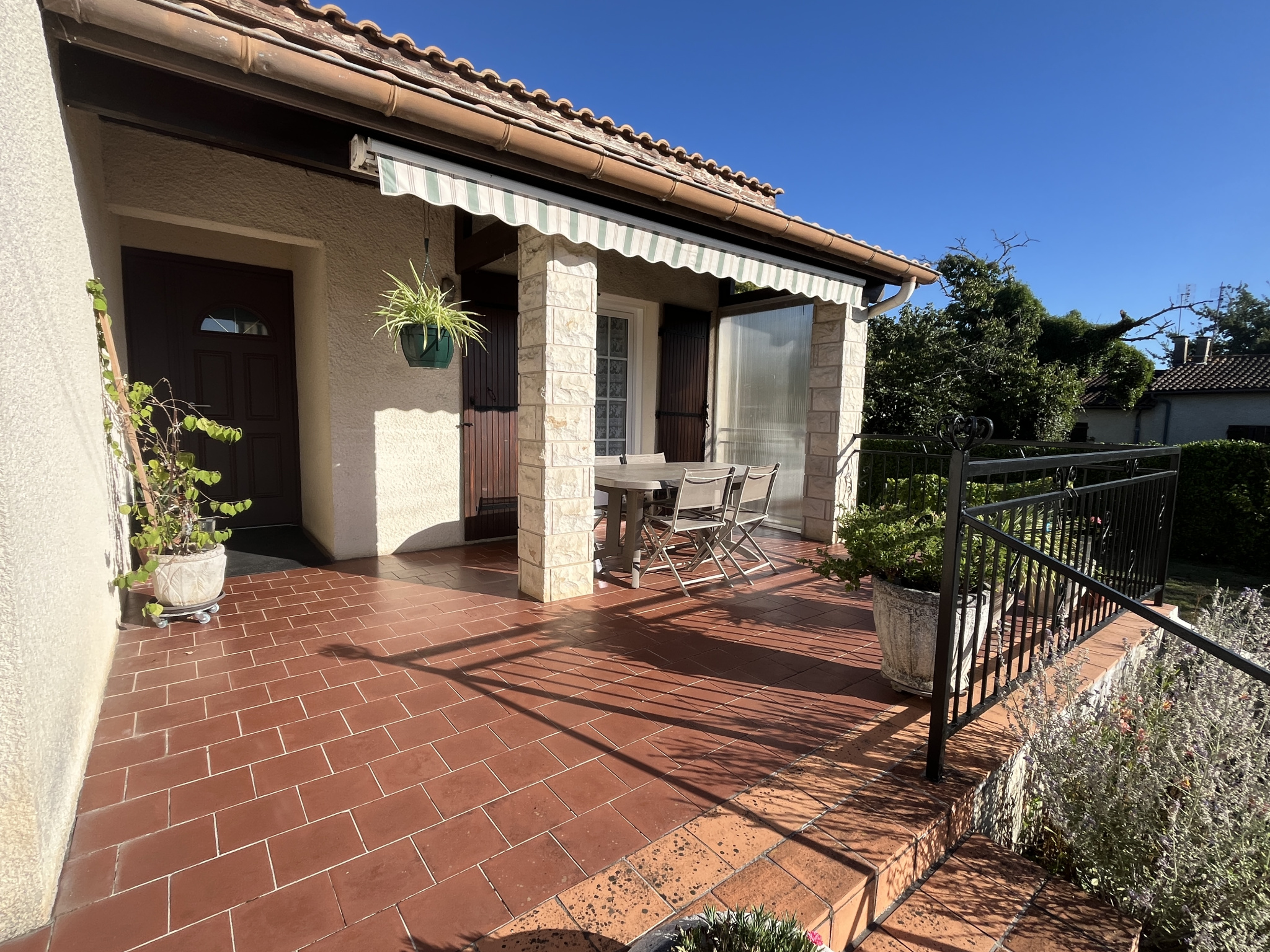 JOLIE VILLA DE PLAIN-PIED à Tonneins dans un secteur calme proche collège, gare et de toutes commodités, à 19km de Marmande. Construction de 2009 à rafraichir d'environ 133m2 comprenant : entrée, salle de séjour avec cuisine équipée ouverte 52m2, 5 chambr...