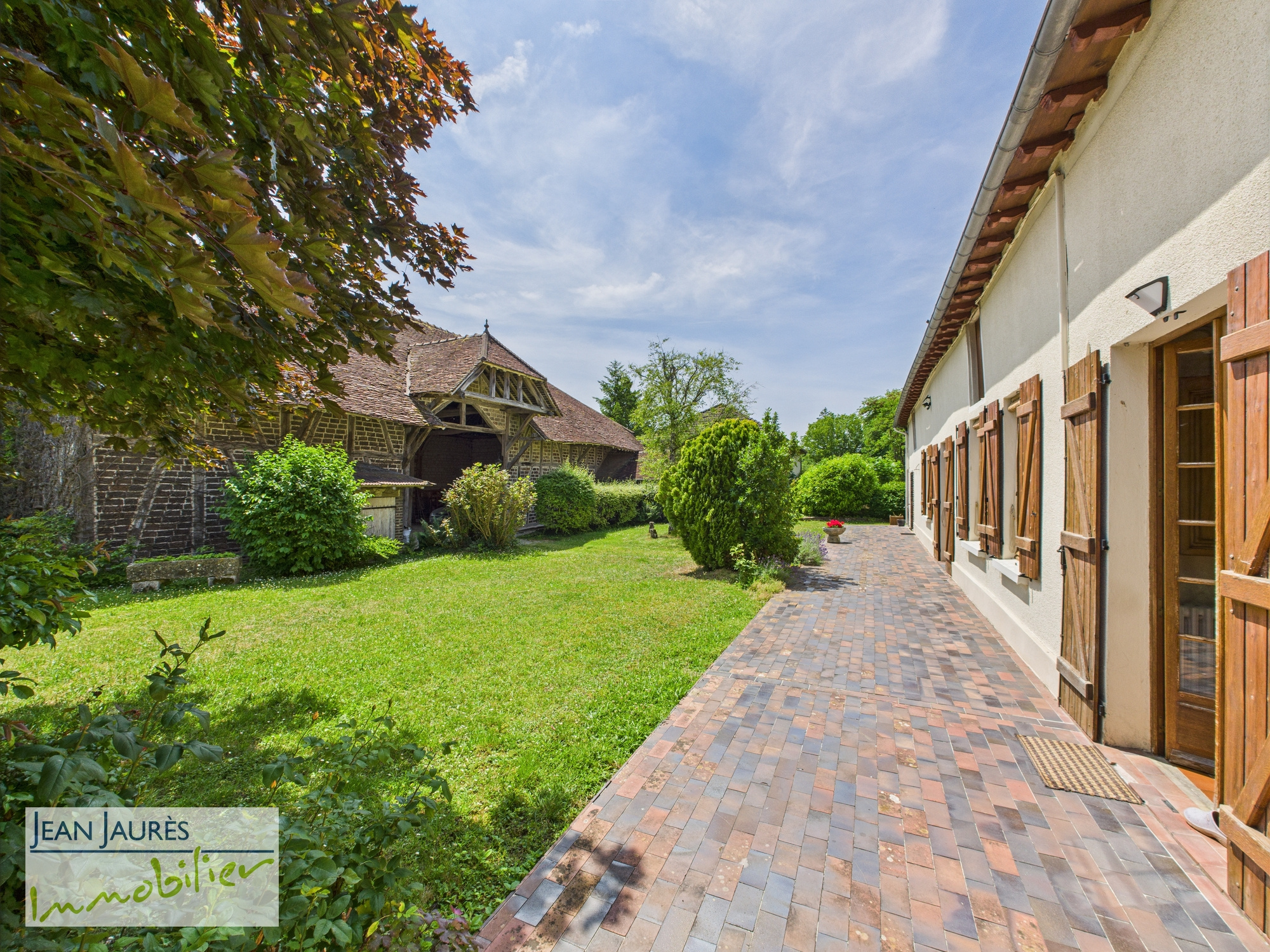 Située dans un environnement paisible, cette charmante longère pleine de caractère a su conserver toute son authenticité : poutres apparentes, sol en marbre, grands placards intégrés... un cachet rare et chaleureux.
