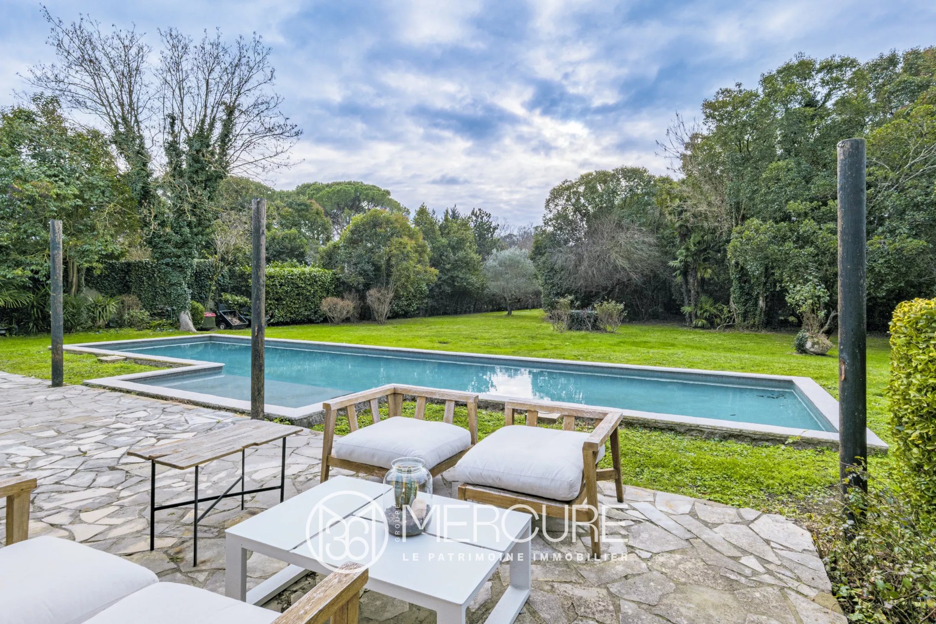 Au cœur du village, cette remarquable maison noble de 273 m² s’inscrit dans un écrin de verdure avec parc paysager, piscine et maison d’amis d’environ 88 m².