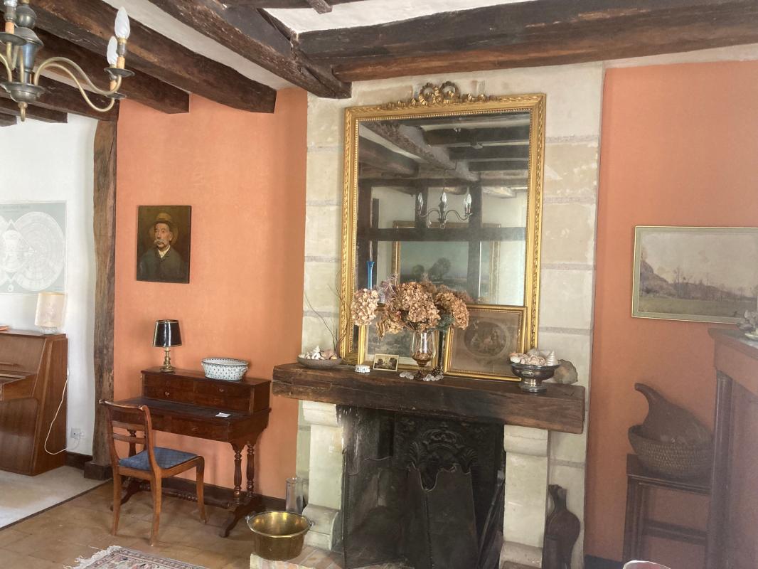 Salon séjour parqueté de 40m² avec cheminées et cuisine aménagée et équipée sous véranda de 25m².