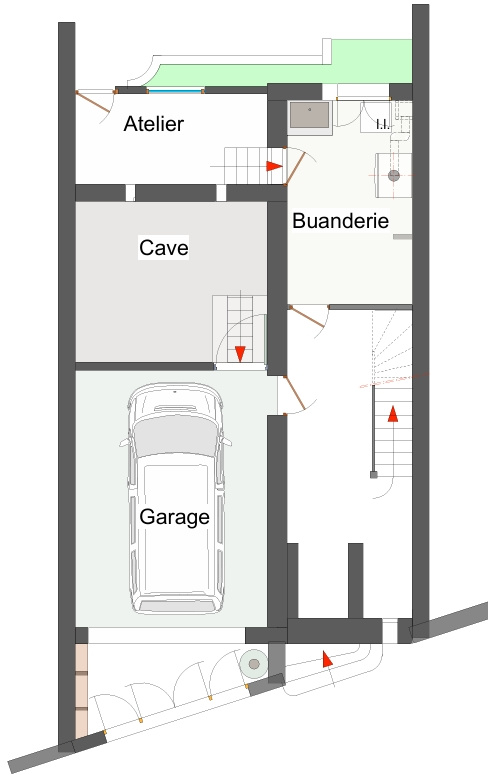 L' entrée se fait par une jolie cour pavée, permettant l'accès aux vélos.
