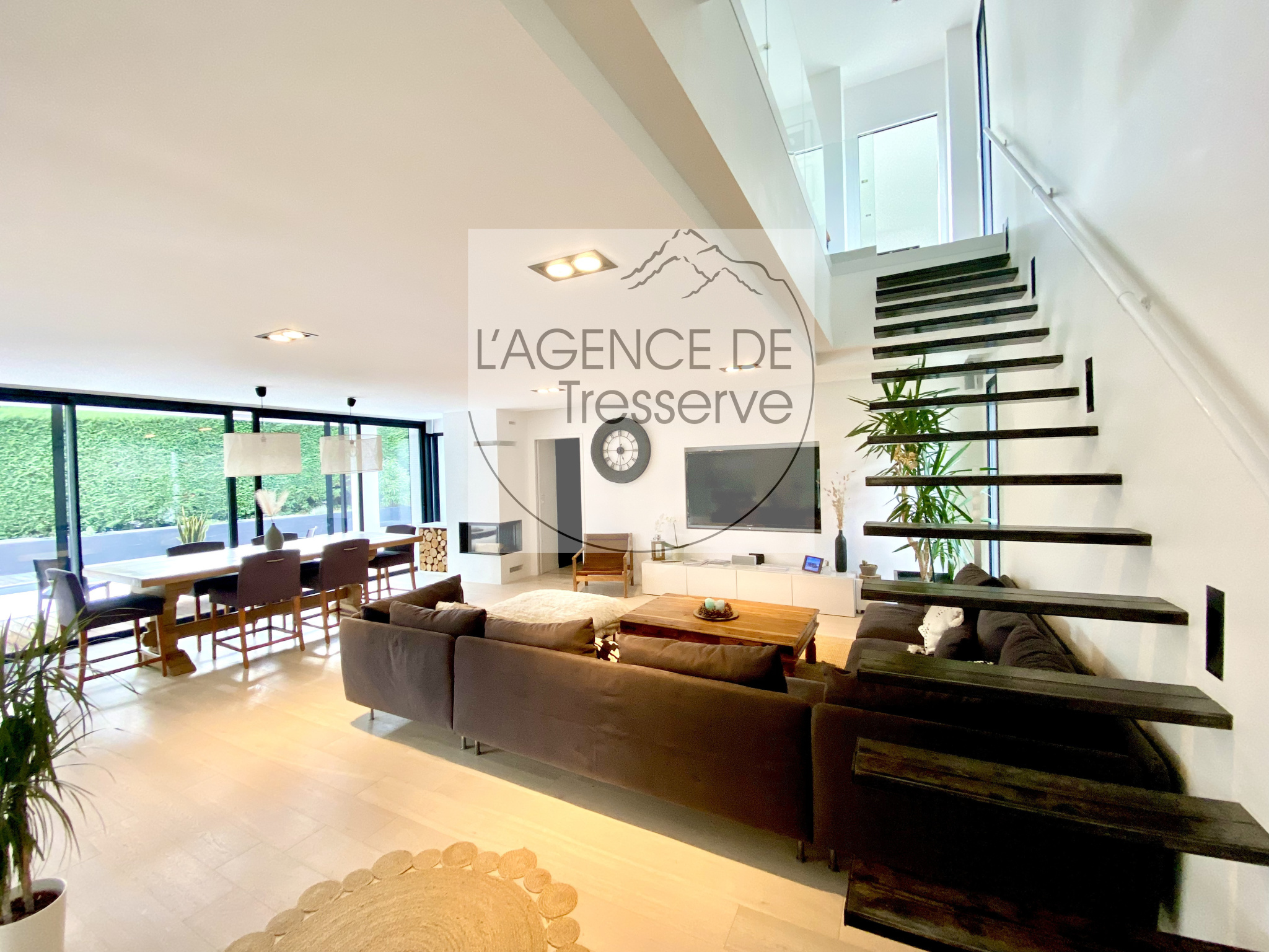 Tresserve, À proximité immédiate d'Aix-les-Bains, dans un environnement calme et privilégié, découvrez cette villa contemporaine de 230 m², édifiée sur un terrain paysagé d'environ 1 000 m².