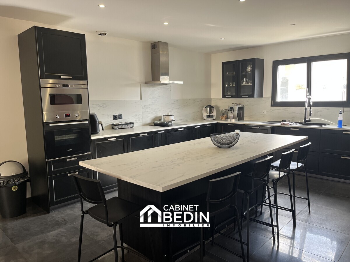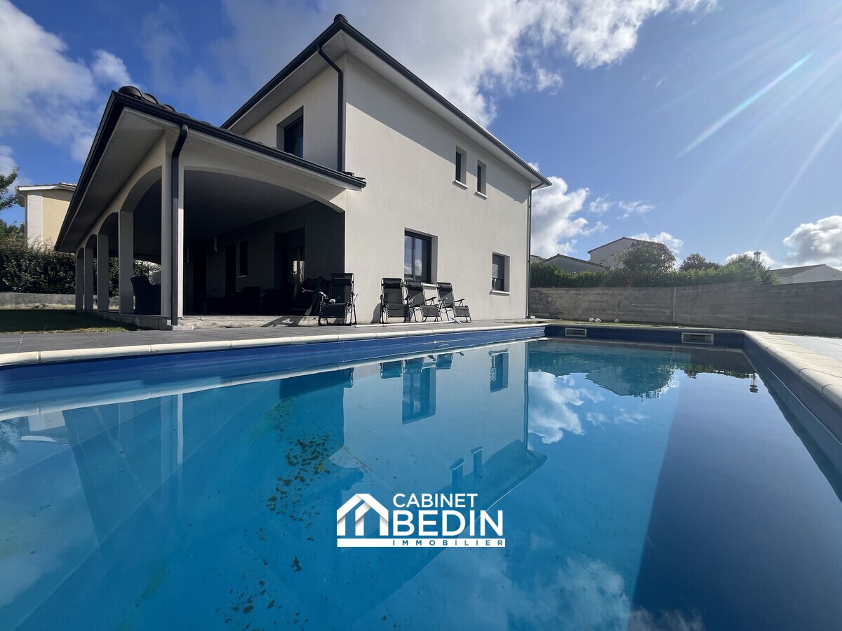 TRESSES CENTRE. À proximité des commerces et écoles, dans un secteur recherché, cette maison de 190 m² environ dispose d'un garage isolé et d'une piscine. Elle comprend une entrée, un séjour lumineux, une vaste cuisine séparée, ainsi qu'une terr...