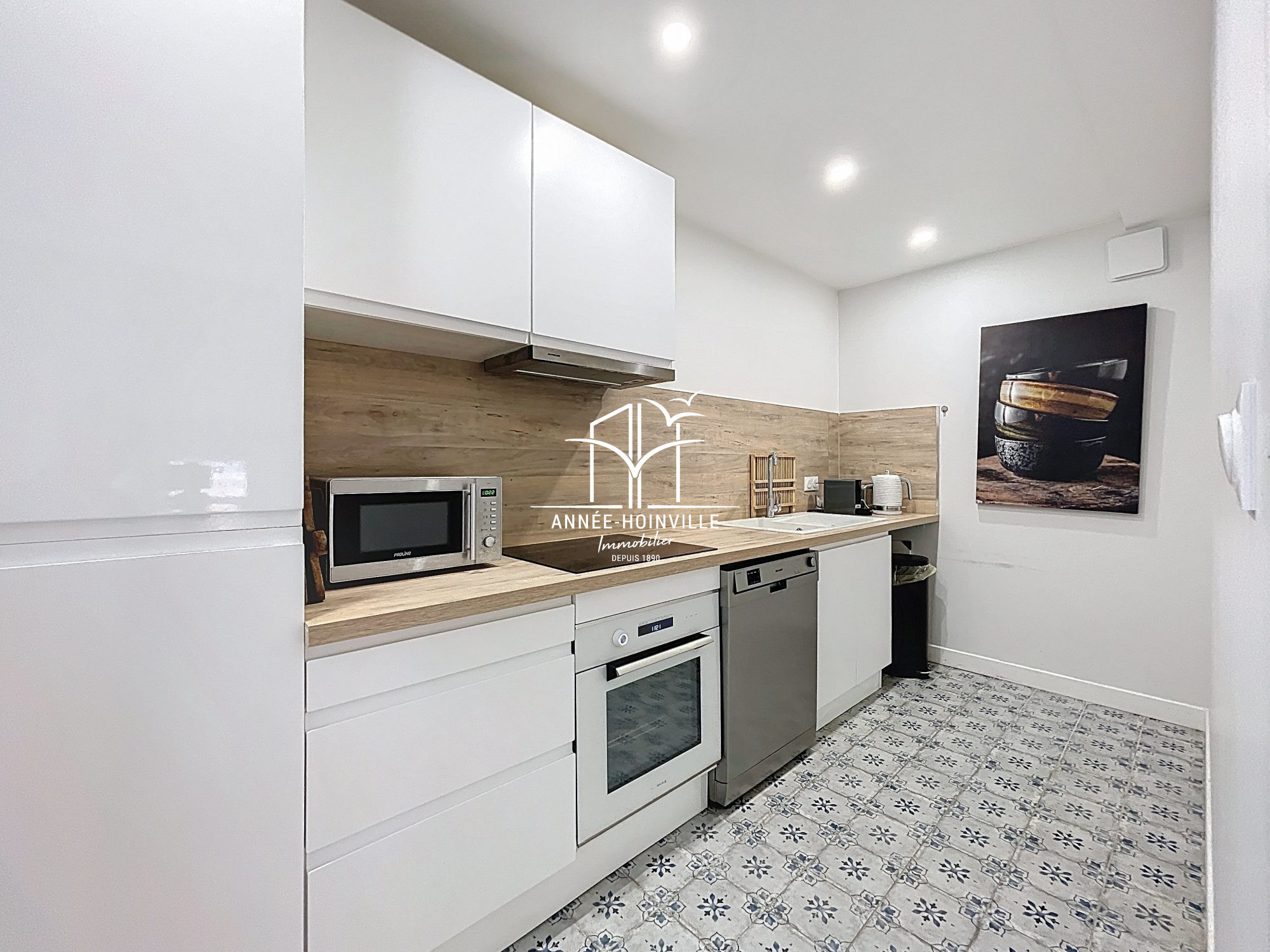 Trouville sur mer, à quelques minutes du quai et de la gare, maison parfaitement rénovée de 5 pièces avec terasse et jardin sud-ouest avec possibilité de rentrer une voiture....la maiosn comprenant au rez de chaussée : entrée, séjour avec cuisine aménagée ouvr...