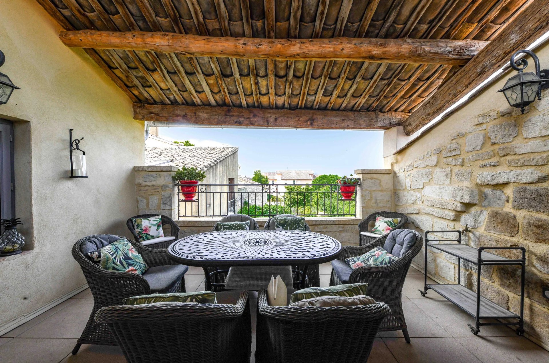 Terrasse avec vues des Alpilles aux Cévennes et le Pont du Gard