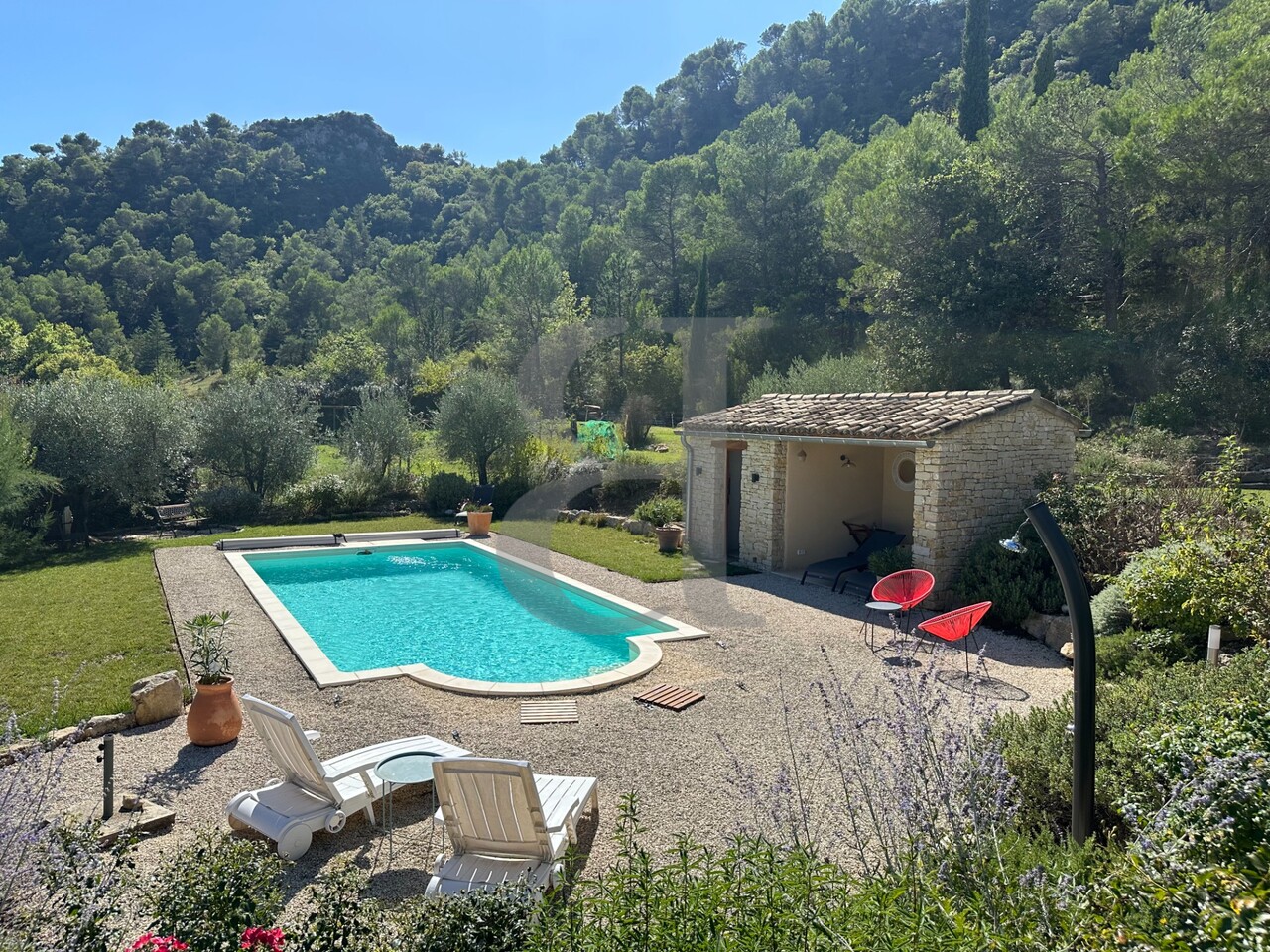 À seulement quelques minutes du centre de Vaison-la-Romaine et de ses commerces, découvrez ce mas en pierres restauré, niché dans un écrin de verdure de plus de 1800 m², entièrement clos et arboré.