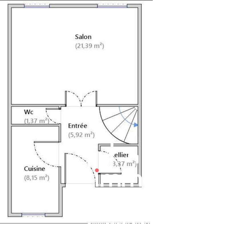 Entrée sur salon de 17m², cuisine aménagée et équipée, cellier, wc.