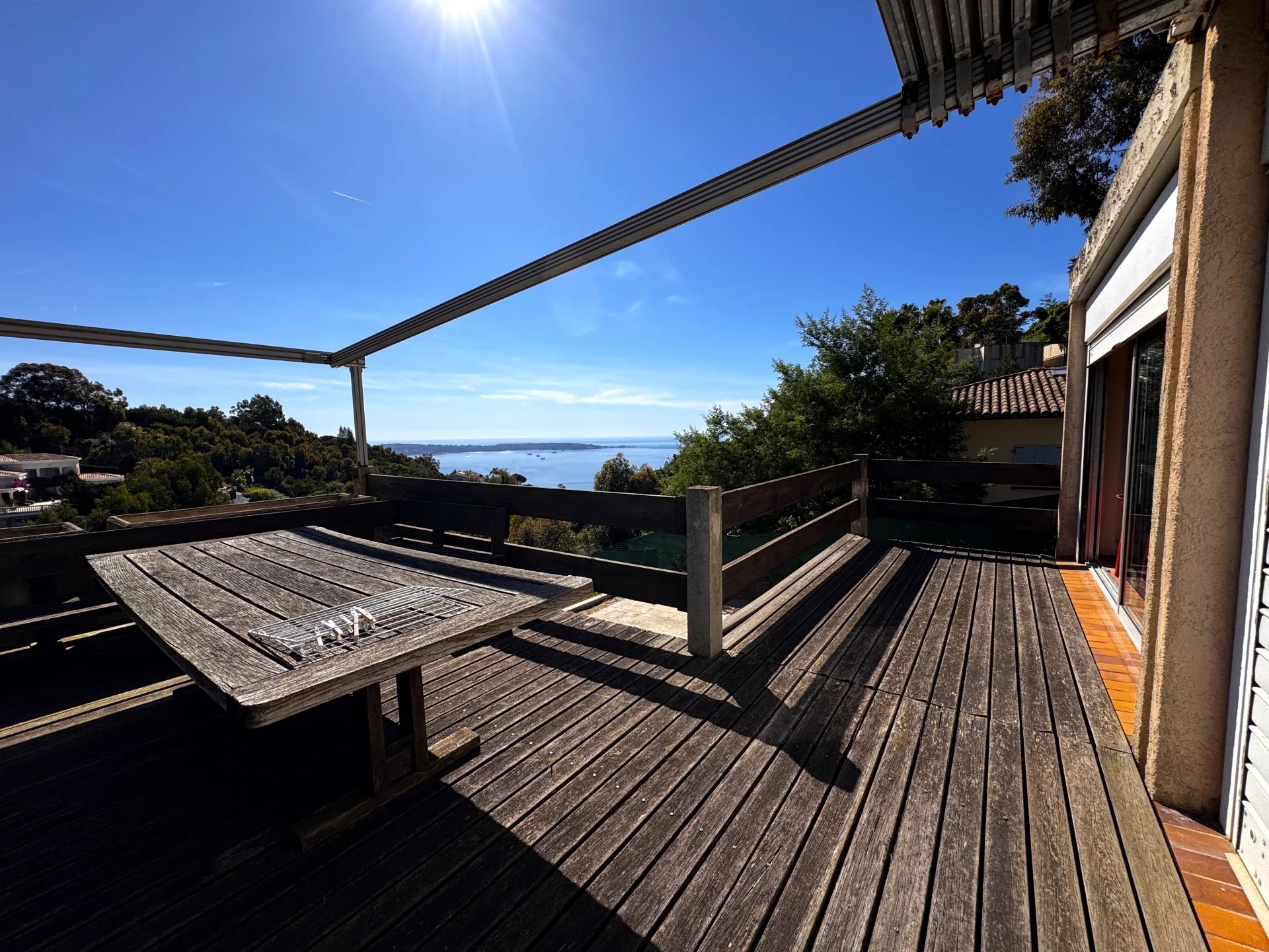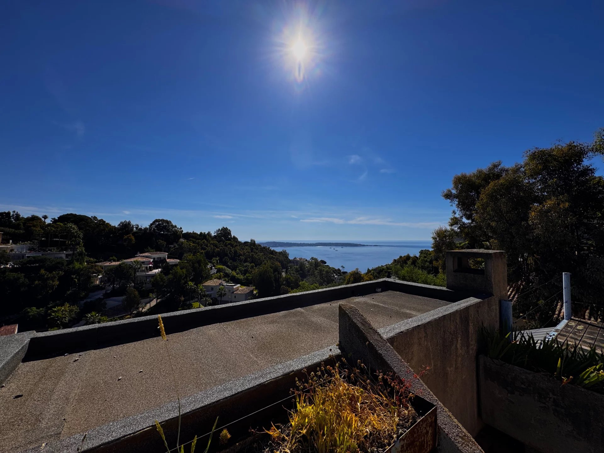 Hauteur de Vallauris, quartier calme et résidentiel propriété d'exception avec une vue panoramique du Cap d'antibes aux iles de Lérins. La superfice est de 320 m2 habitable et peu déveloper 500 m2.