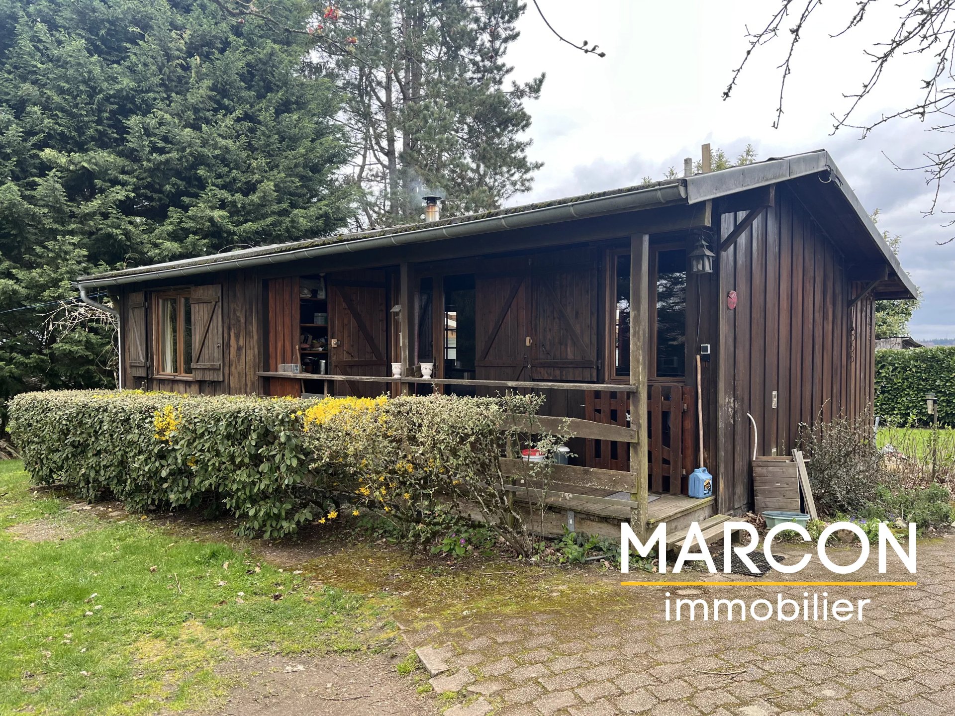 Propriété comprenant 3 chalets de type F3, 2 yourtes et 1 roulotte, idéale pour un projet touristique ou familial.