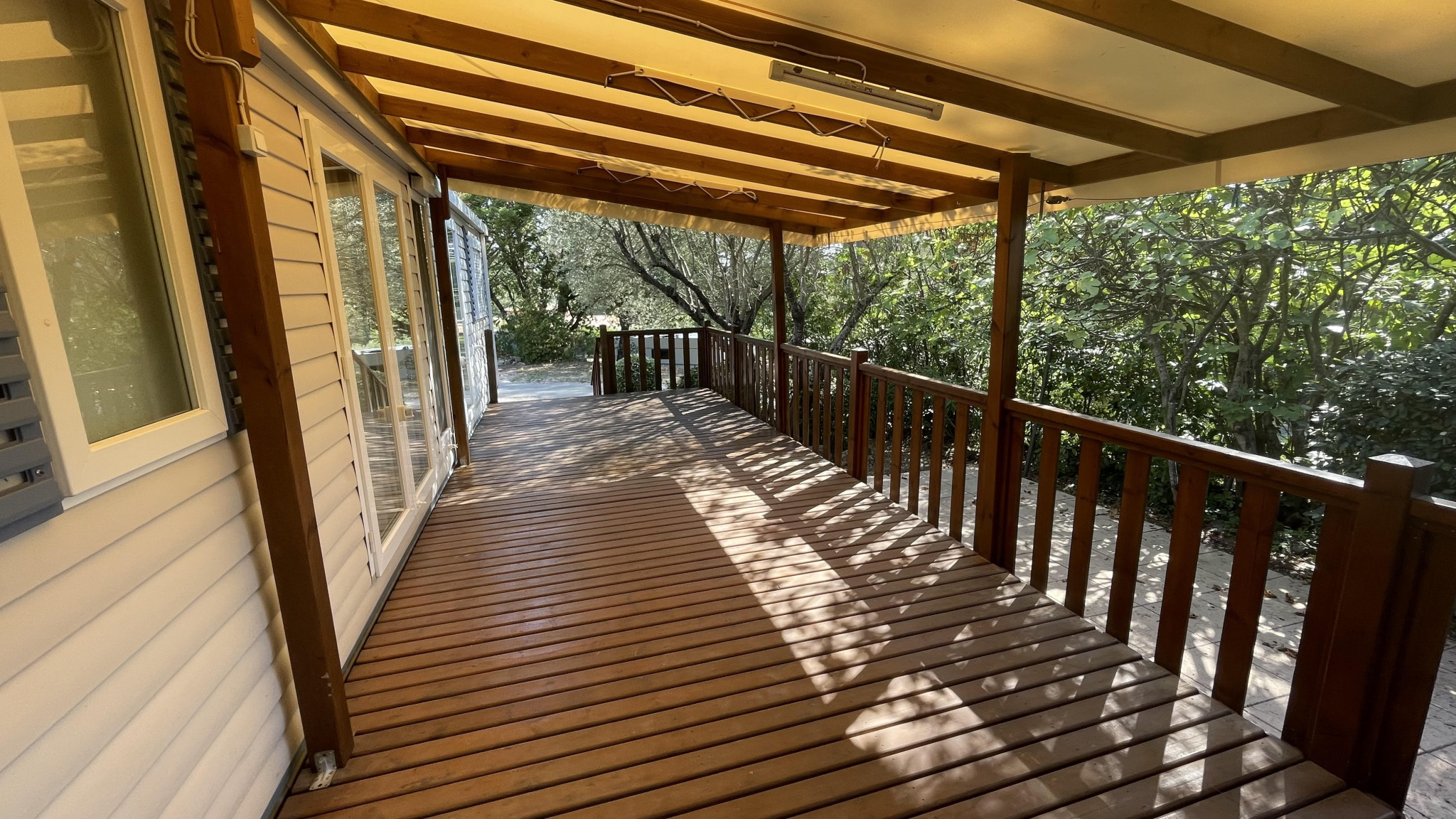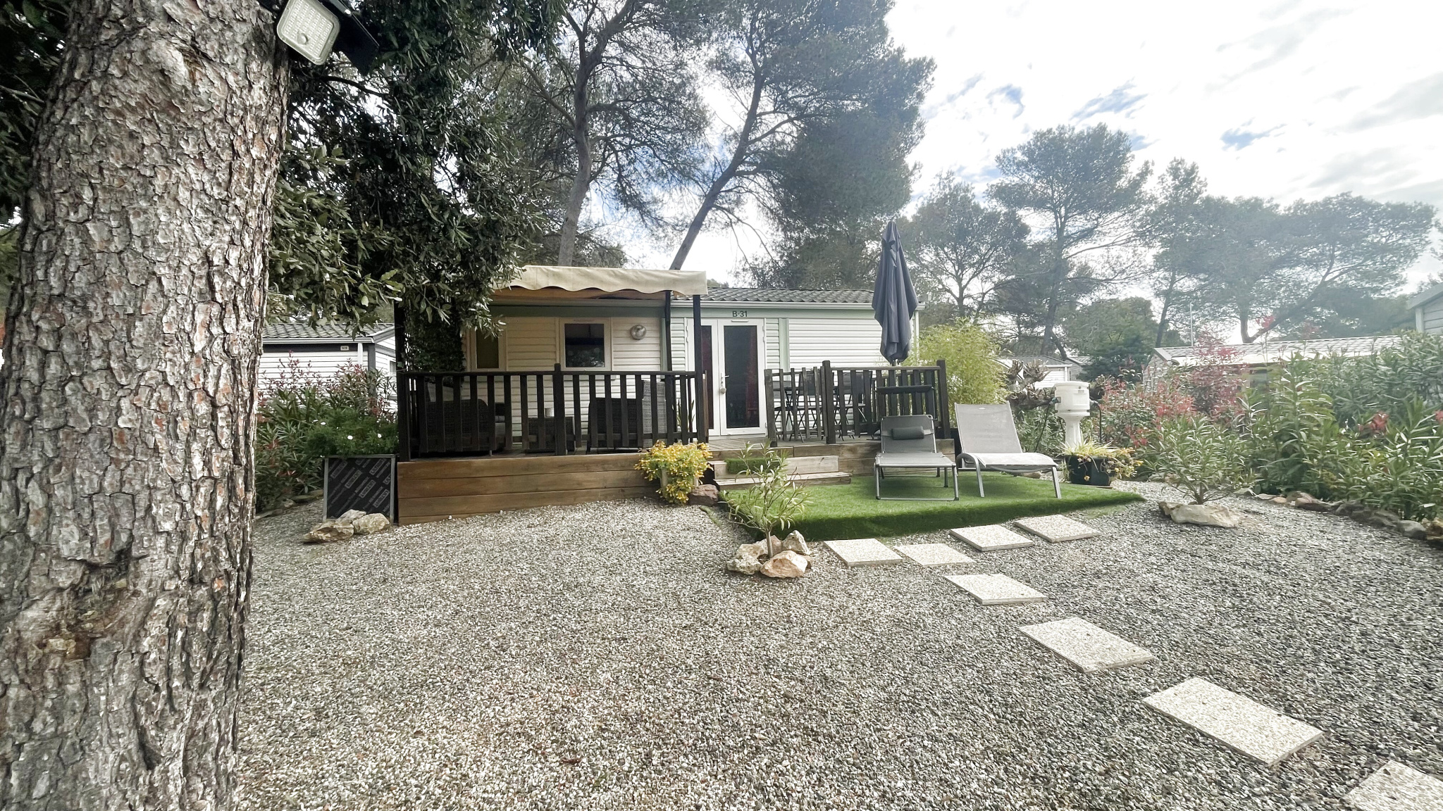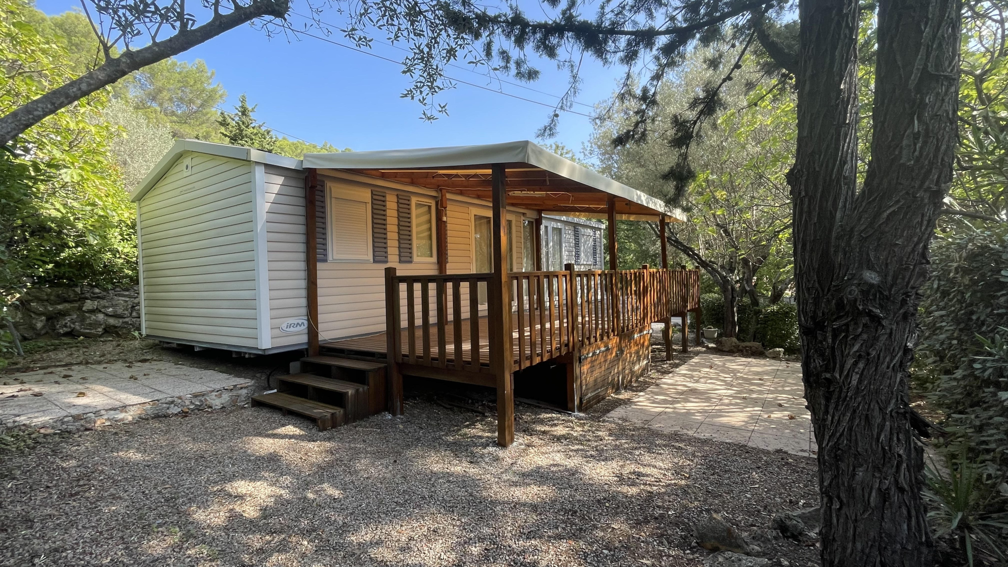 83370 Fréjus. Magnifique mobilhome récent avec bardage bois situé dans un village vacances écologique au sein d'une oasis de verdure avec son port privé sur la rivière l'Argens, son service de navette fluviale pour un accès direct aux plages, ses 3 p...