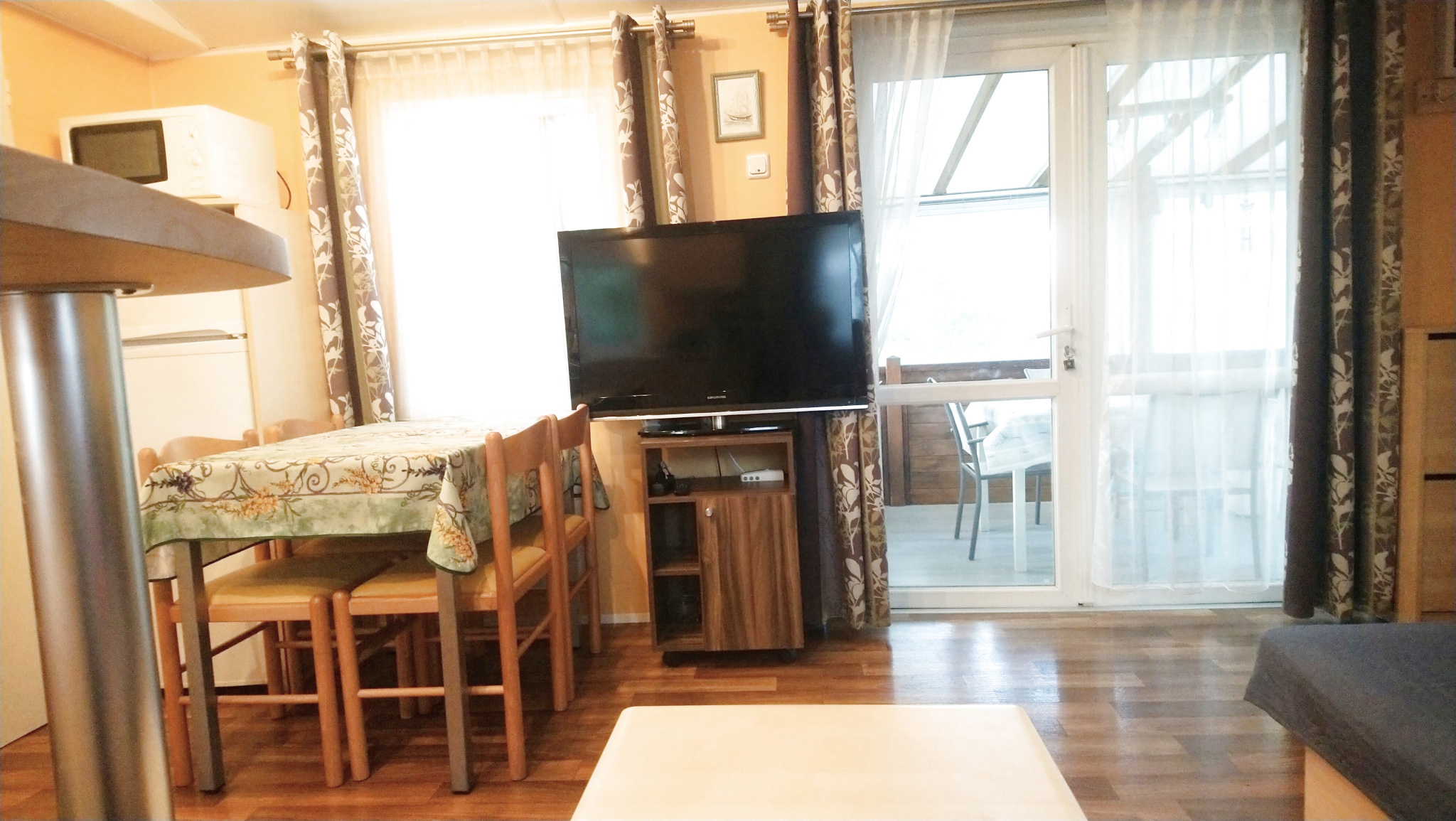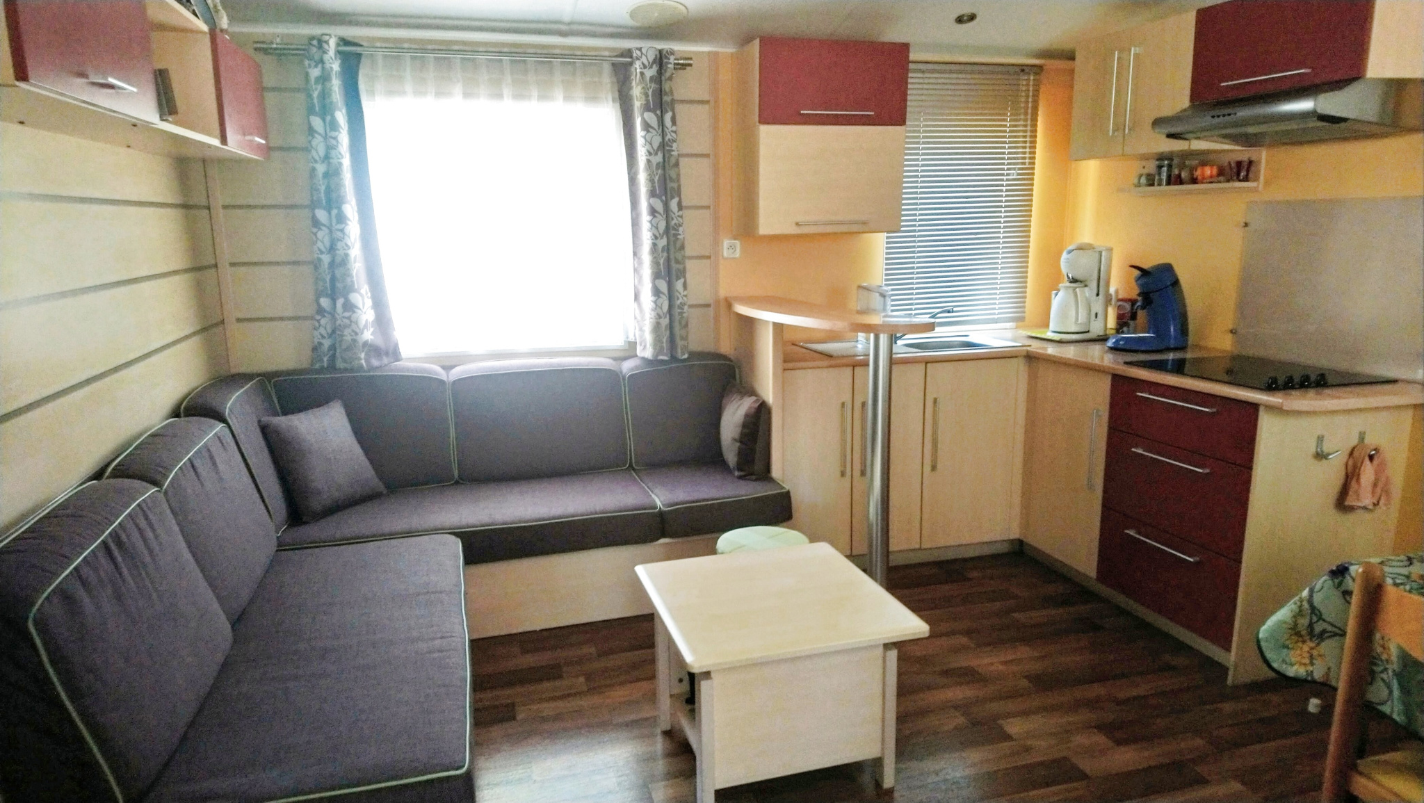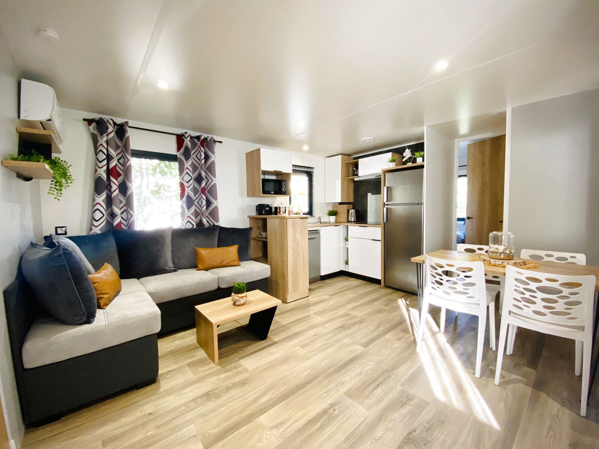 Dans un parc de loisirs avec toutes les commodités et services (4 piscines dont 1 chauffée à partir de avril), jacuzzi, balnéo, tobbogan, salle de fítness, mini golf, terrain de foot, tennis, 2 padels, terrain de boules, superette, restaurant, animations. Mobi...