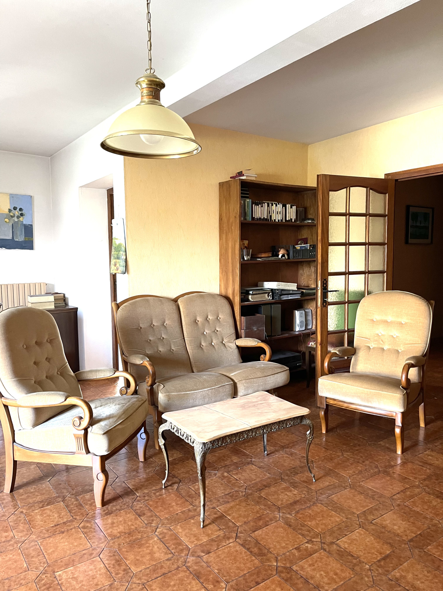 Bel emplacement pour cette villa des années 1980 dans secteur calme et recherché, de plain pied avec grand sous sol.de 165.12 m2 et cave. Composée : Hall, salon séjour avec cheminée, cuisine équipée séparée, lingerie, salle d'eau avec WC, dégagement, 4 ch...