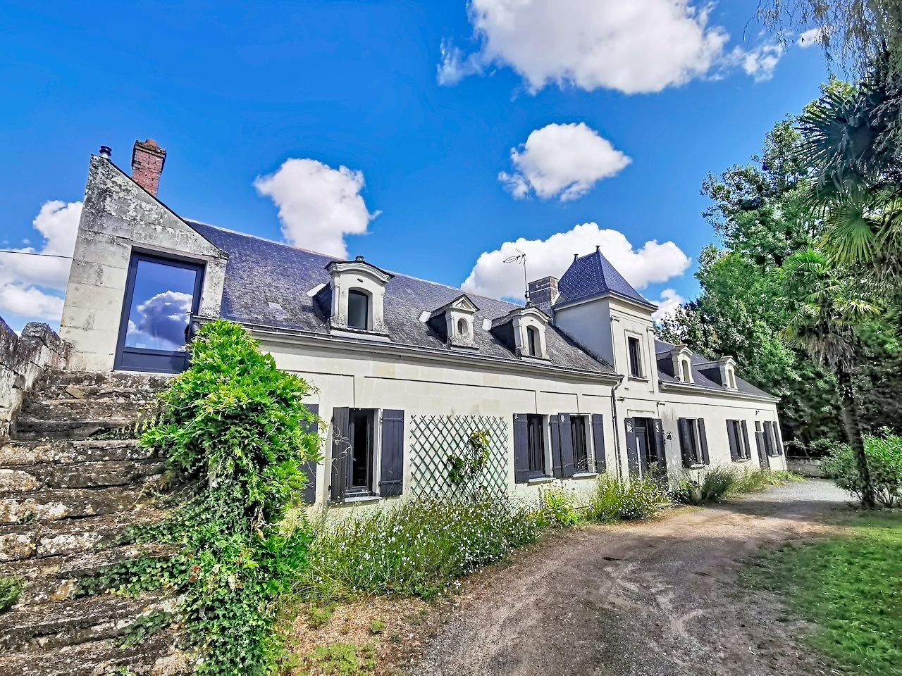 Sur l'axe Saumur Tours, typique longère ligérienne construite en 1781 comprenant une tour carrée, avec dépendances, sur cour et jardin clos, en contre bas de la levée de la Loire