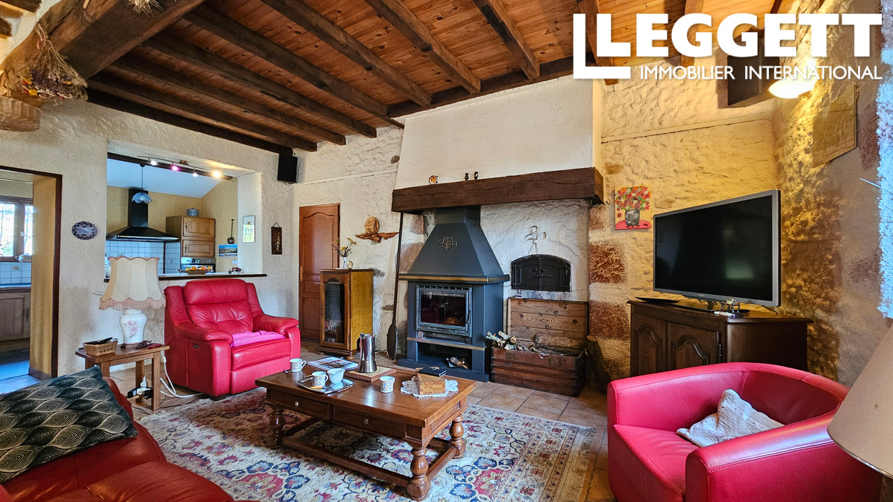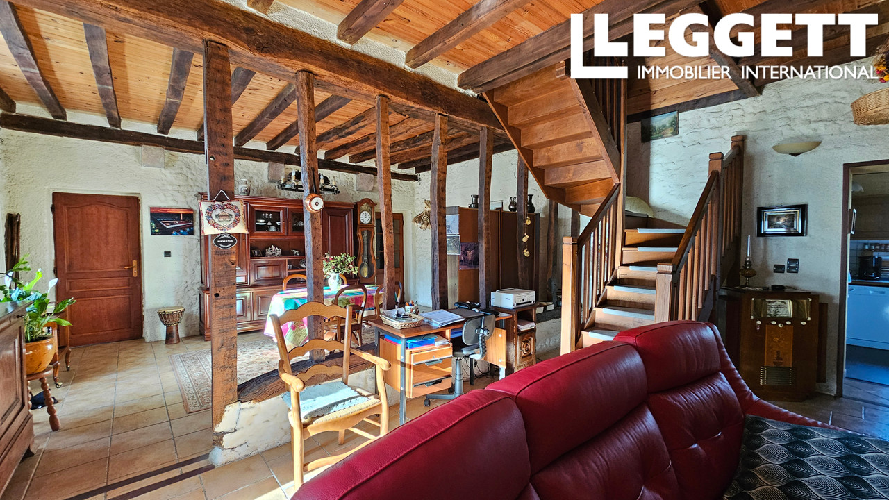 Cette superbe maison de campagne, entourée de pierres apparentes, offre un cadre idyllique avec ses 3 hectares environ de terrain, sa grange en excellent état et son...