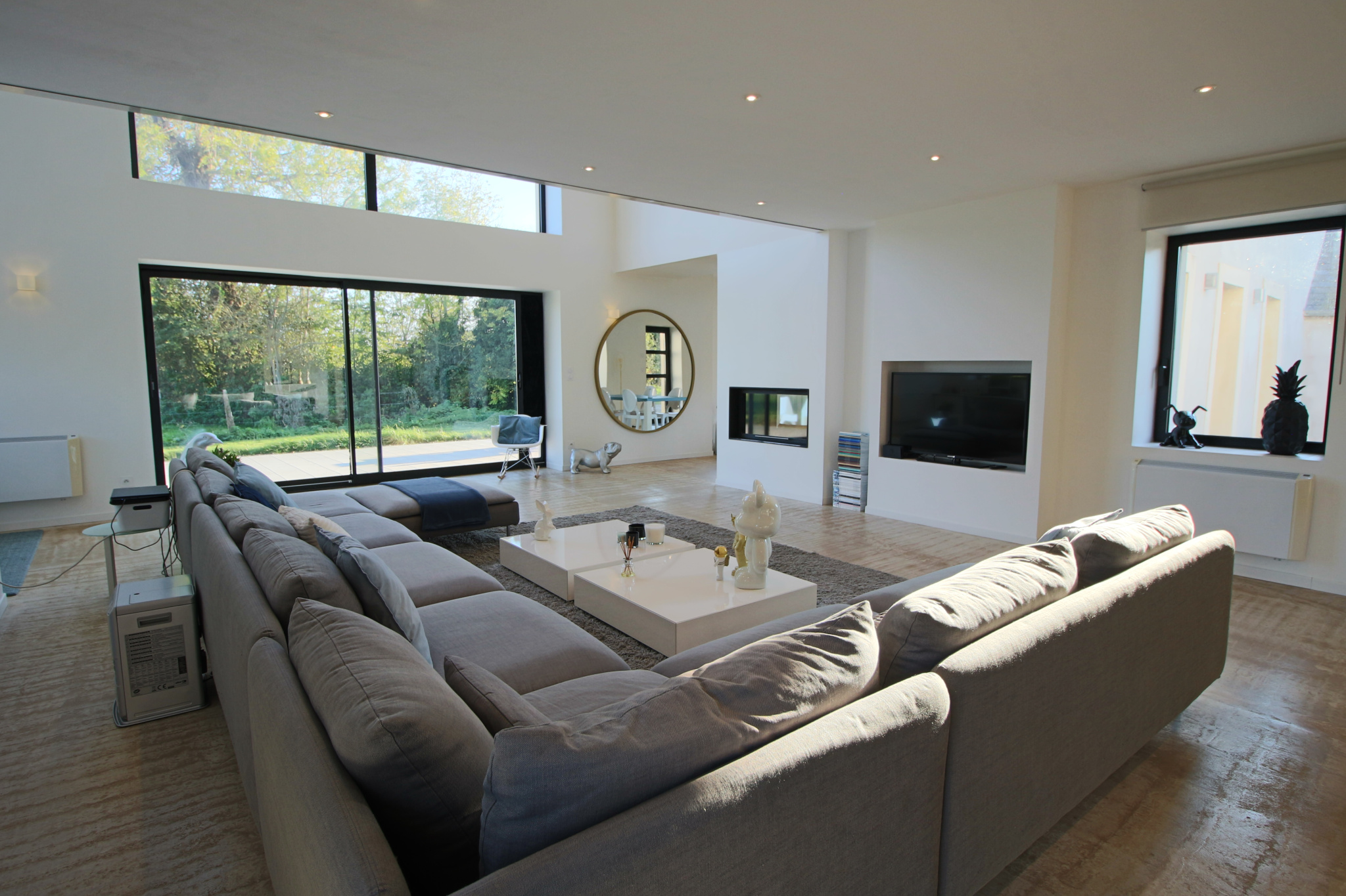 Au rez-de-chaussée : un hall d'entrée avec une jolie cage d'escalier, une cuisine équipée et aménagée, un vaste séjour / salon de 48m2 avec une cheminée,...