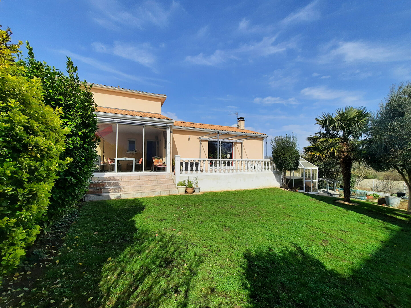 Maison de plain pied édifiée sur un terrain clos de 840 m2, offrant : Entrée, séjour avec cheminée, cuisine, 3 chambres, salle de bains, débarras, placards, WC et garage.