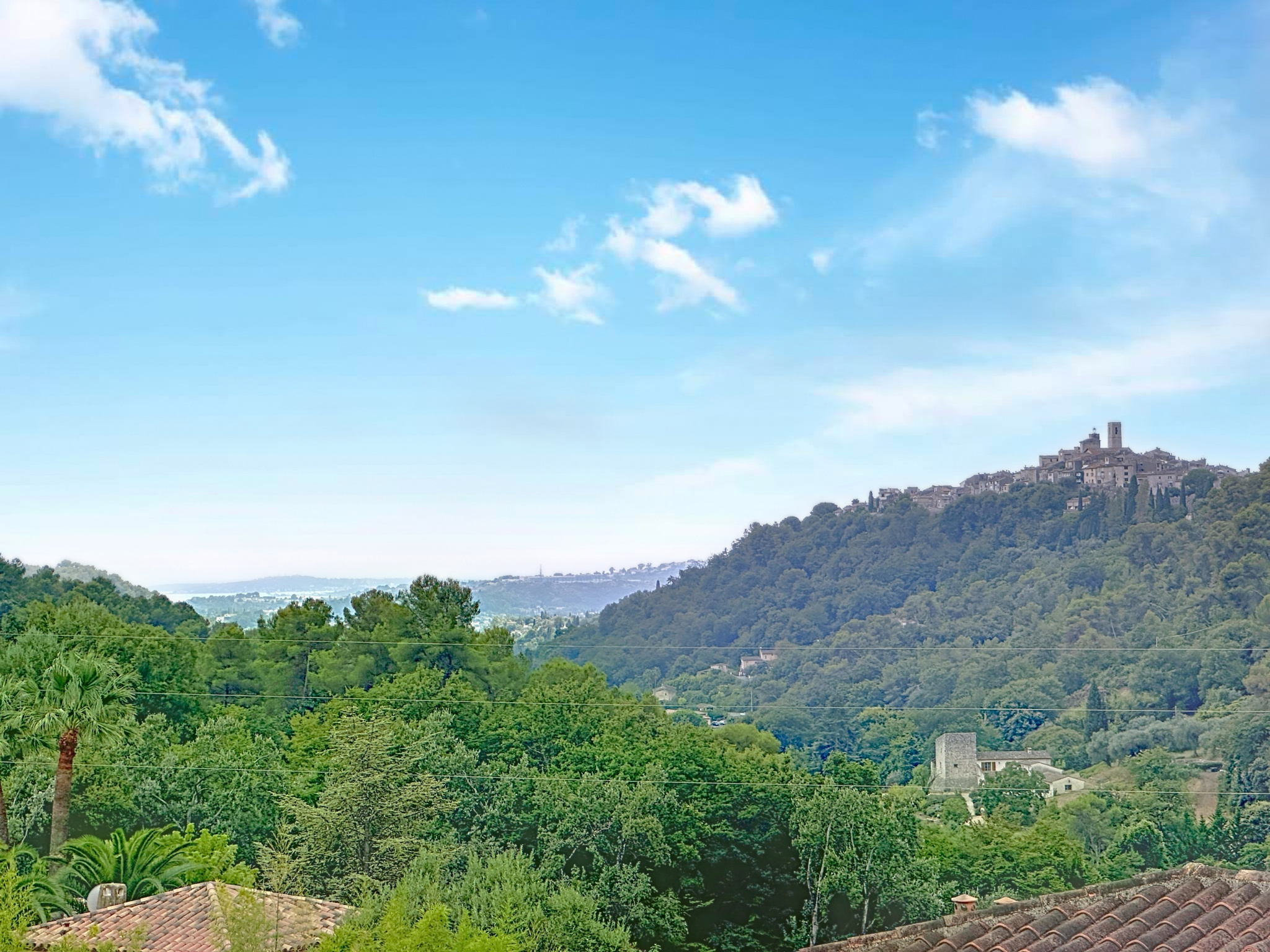 Située à seulement 5 min du centre de Vence, cette villa de 180 m2 offre une vue époustouflante, dans un environnement très calme et sans vis à vis tout en étant à proximité de la mer et de l 'aéroport de Nice.