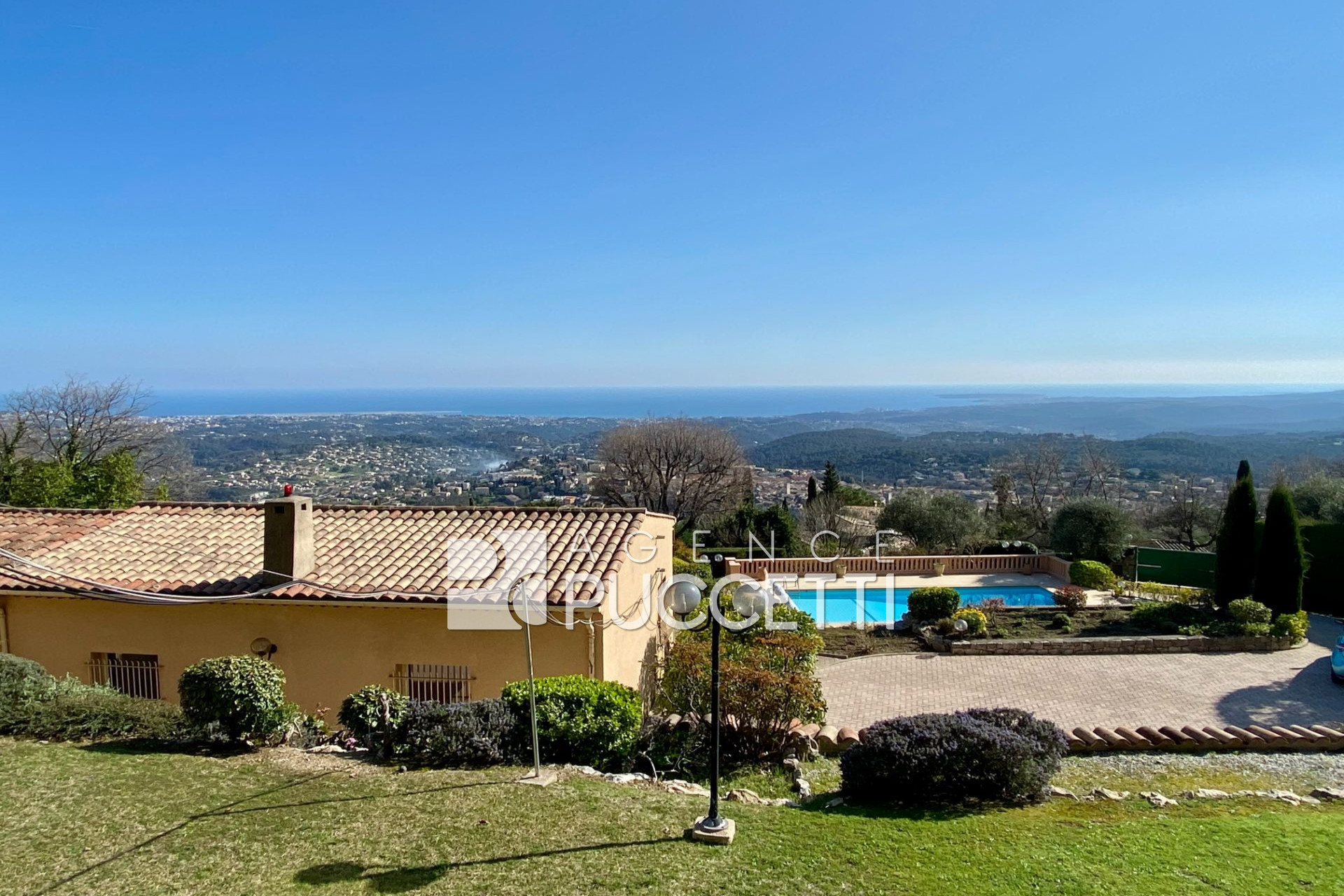 Vence, située à toute proximité du centre ville, en position dominante, bénéficiant d'une vue mer, cette luxueuse propriété offre une qualité de matériaux et de finitions absolument remarquables.
