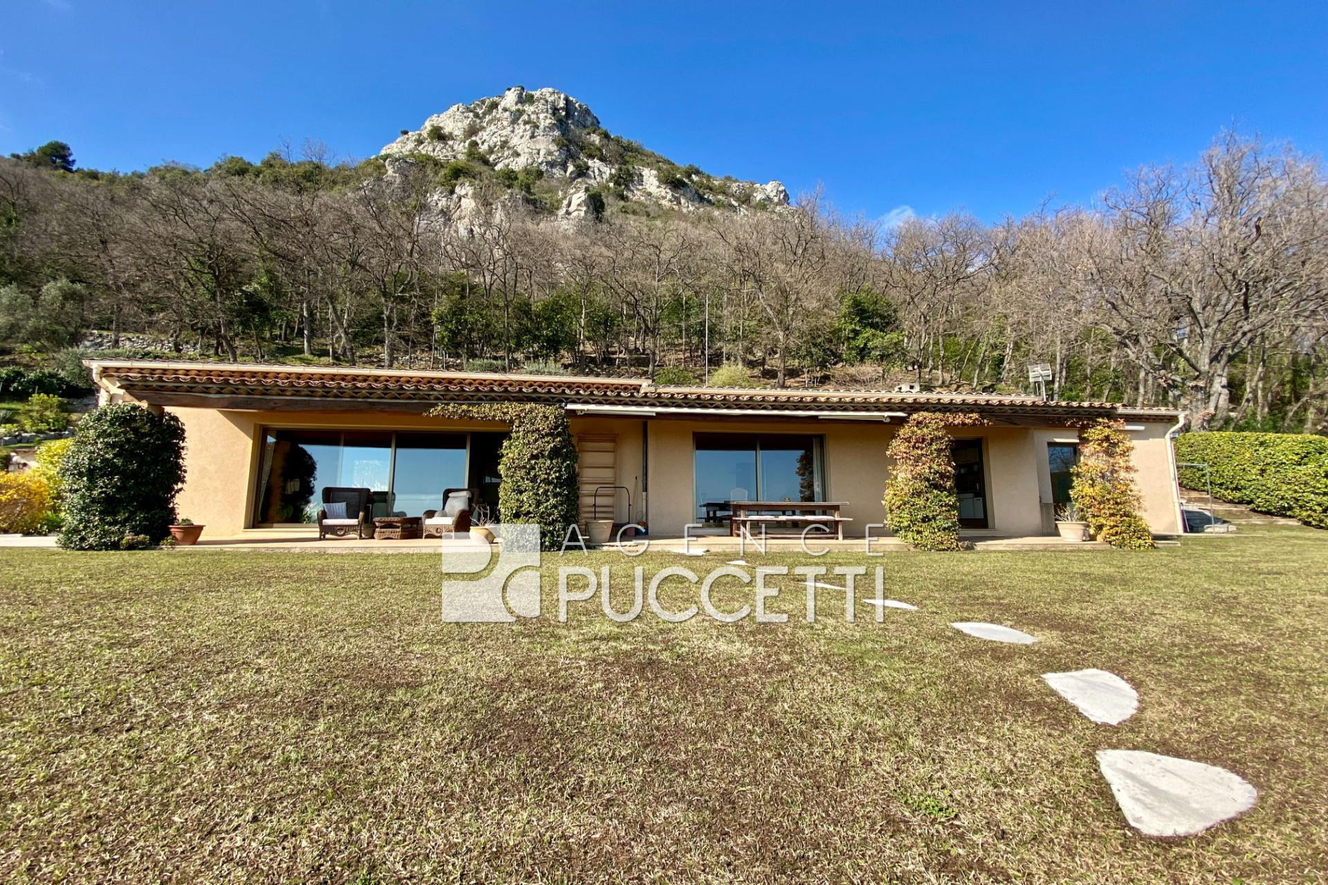 Bienvenue dans une villa dont l’emplacement parle de lui-même : une vue dégagée sur le paysage, un calme absolu, et ce à seulement cinq minutes en voiture du centre de Vence, à proximité de la mer et de l’aéroport de Nice.