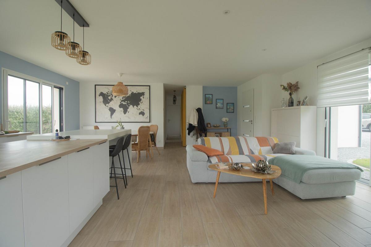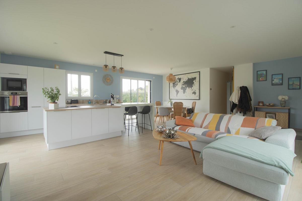 La maison ouvre ses portes sur une entrée, un bel espace de vie lumineux de 40 m² avec c...
