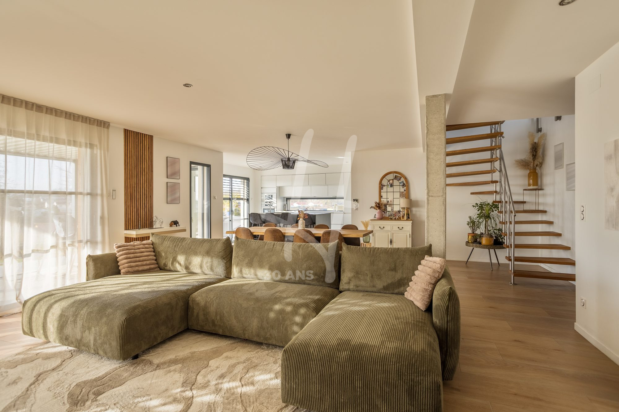 À Verny, commune prisée au sud de Metz, cette maison cubique récente séduit par son architecture contemporaine et son environnement calme, à seulement 8 minutes de la ville.