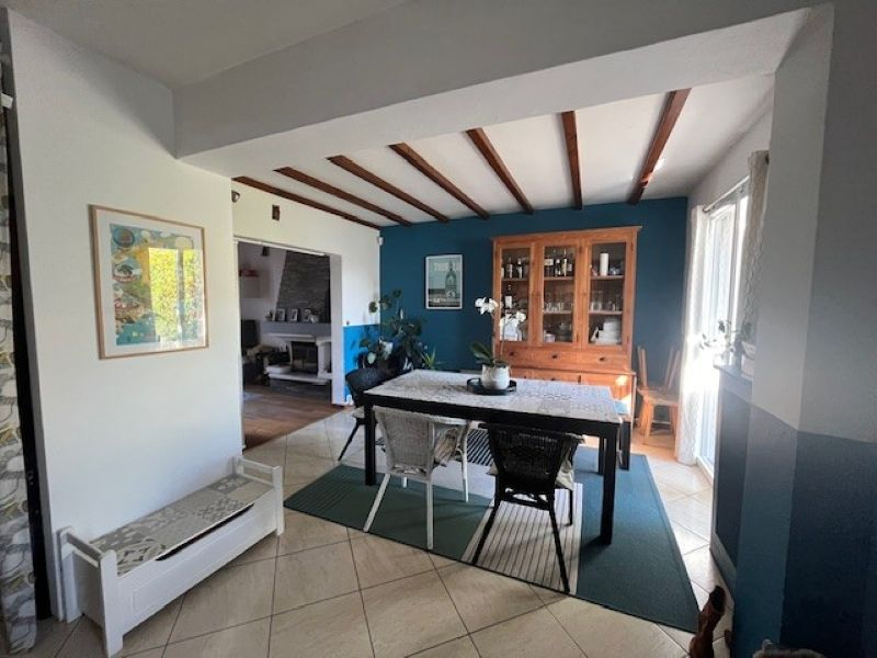 Elle se compose d'une cuisine aménagée et équipée ouverte sur le salon, une verrière et une buanderie prolonge l'espace de vie au rez-de-chaussée.