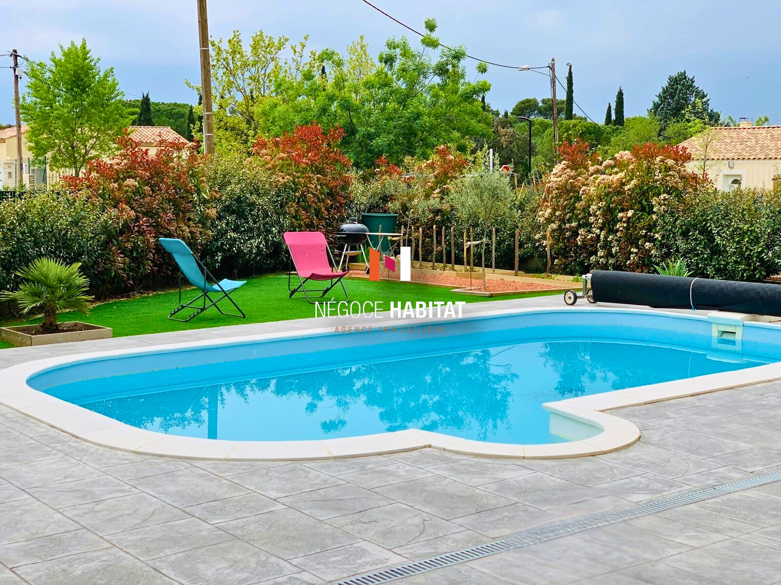 Située à VIC LE FESQ, dans un environnement calme NEGOCE HABTAT vous présente cette agréable maison de plain-pied de type T4 d'une superficie de 100 m2, avec piscine, sur un terrain clos et arboré de 523 m2.