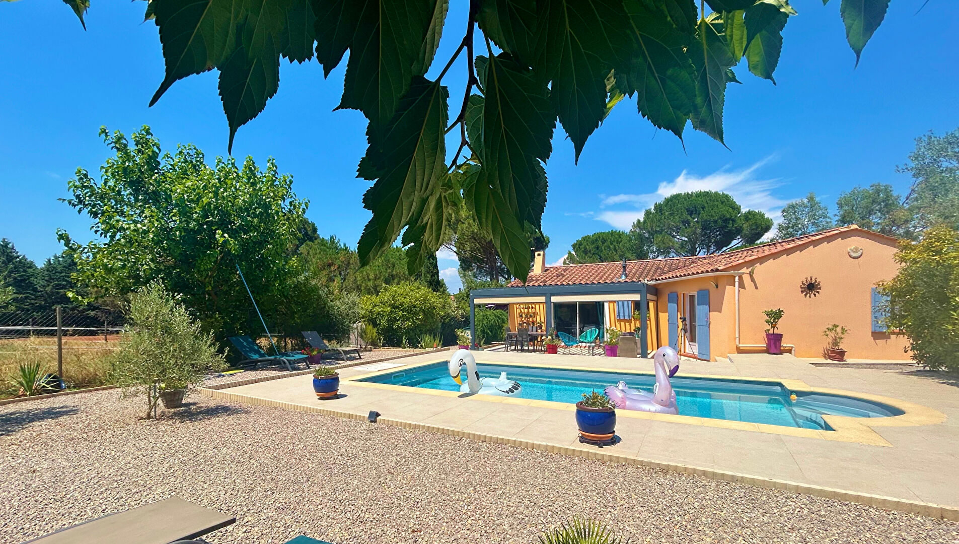 Située dans un environnement privilégié, calme et verdoyant, cette maison de plain-pied conjugue charme provençal et confort contemporain. D'une superficie habitable de 105 m², elle offre un agencement optimisé et des prestations soignées.