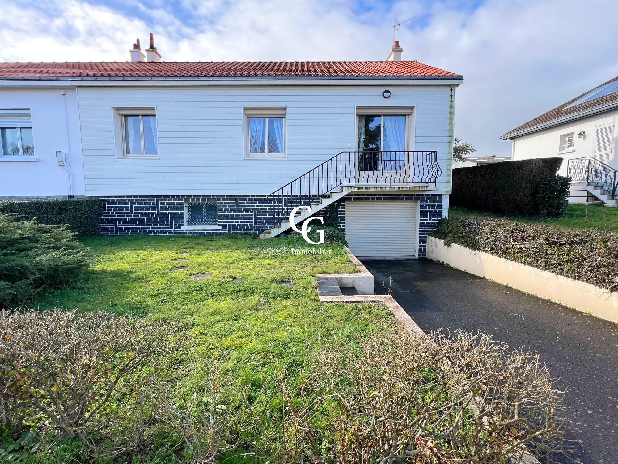 Le Cabinet Guémené vous présente en exclusivité, à l'entrée du bourg de VIEILLEVIGNE : Sur son terrain entièrement clos de 824m², une maison sur sous-sol d'une surface habitable de 87m² avec accès direct côté jardin comprenant :