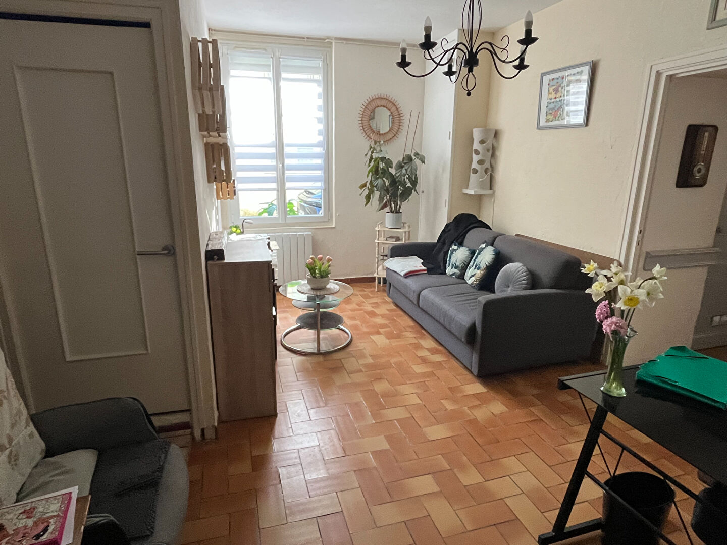 En rez de chaussée, un appartement comprenant : entrée, pièce de vie avec cuisine, wc