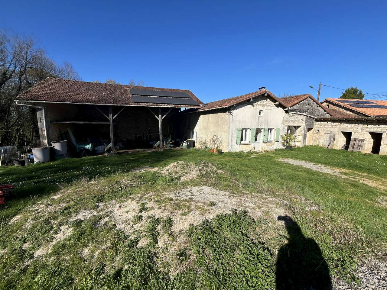 Ancienne maison de trois pièces, divers toits. Terrain de 4675 m2 environ.