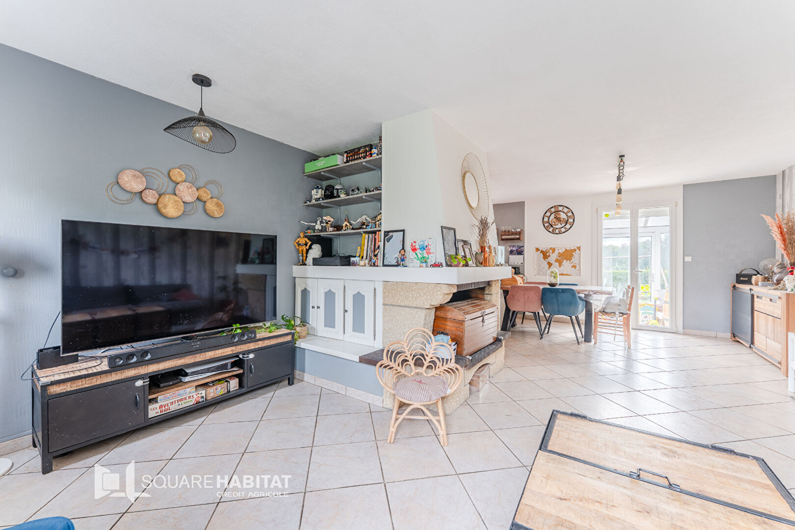 Elle se compose au rez-de-chaussée d'une entrée donnant sur un vaste salon-séjour chaleureux,...