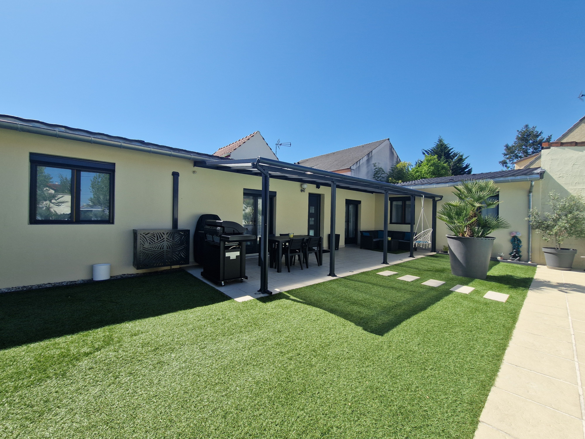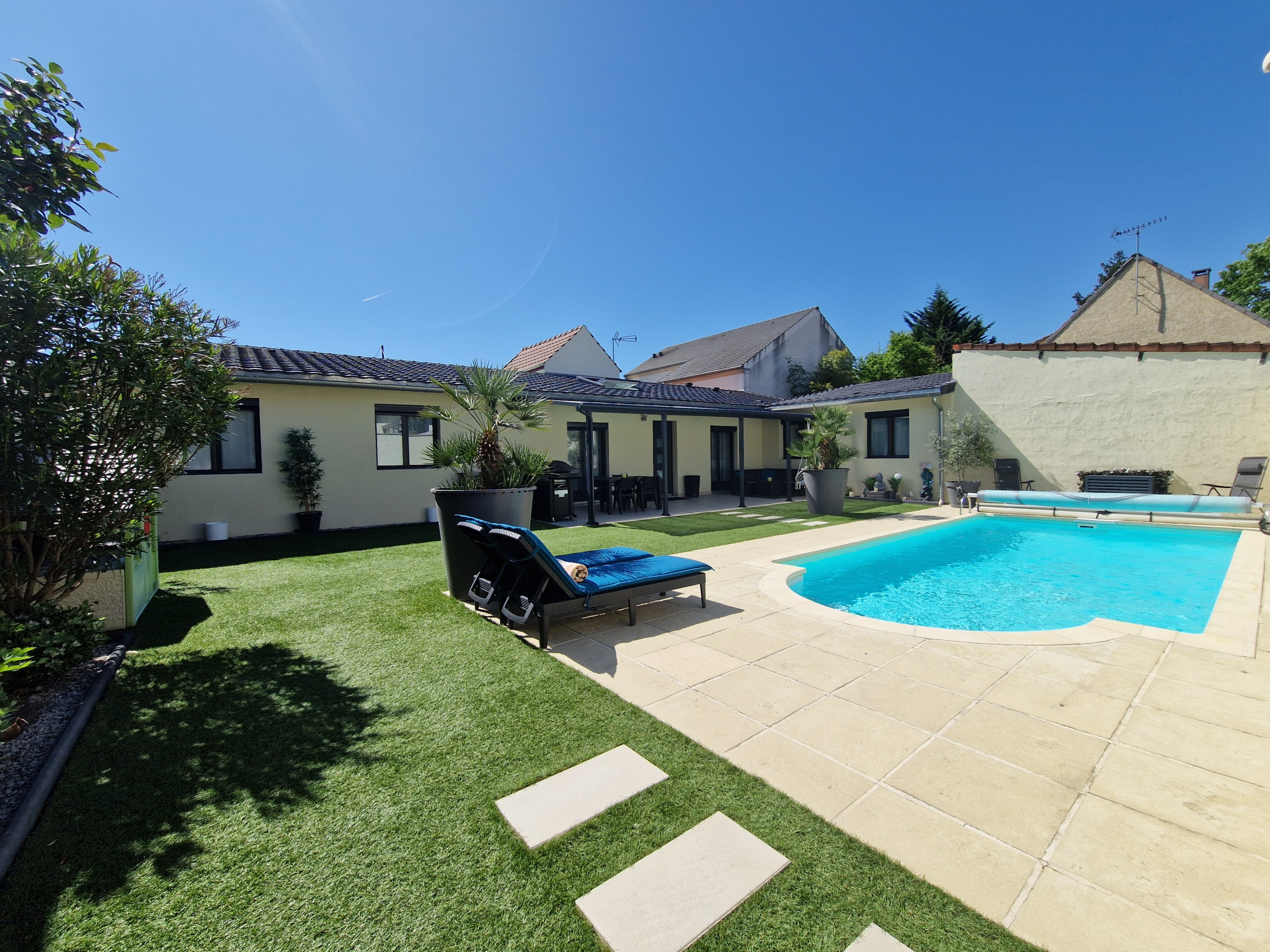 Superbe maison PLAIN-PIED de 107 m2 avec piscine, idéalement située dans le secteur prisé du quartier des fleurs à Vigneux-Sur-Seine (91).