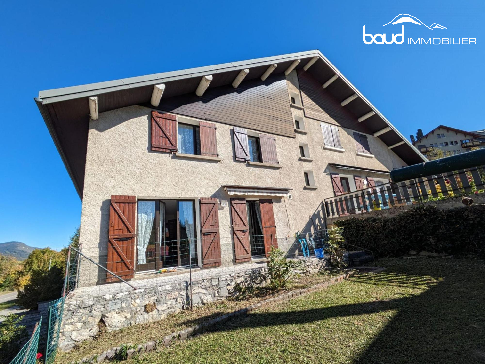 EXCLUSIVITE - VILLARD-DE-LANS (38548) - RARE, dans un quartier calme et recherché, proche du centre-ville. Maison d'environ 220 m2 avec 2 grandes TERRASSES et BALCON, édifiée sur terrain de 450 m2 PISCINABLE. Sur 3 niveaux, elle se compose :