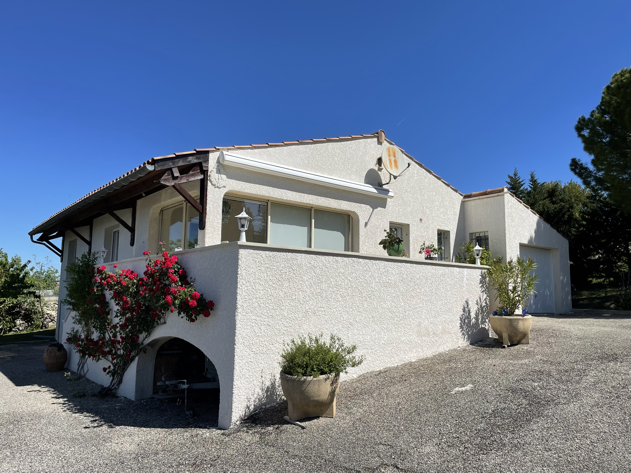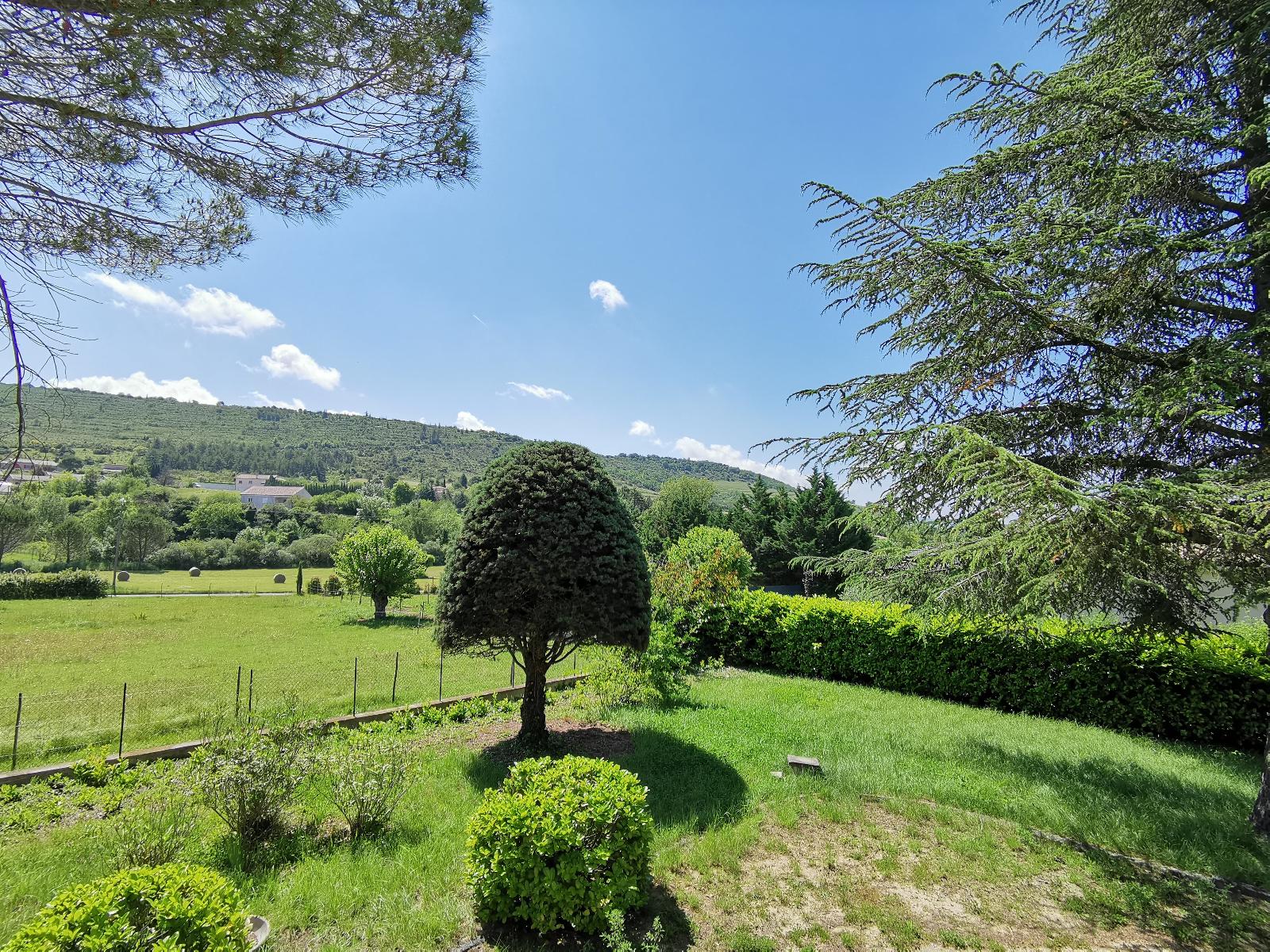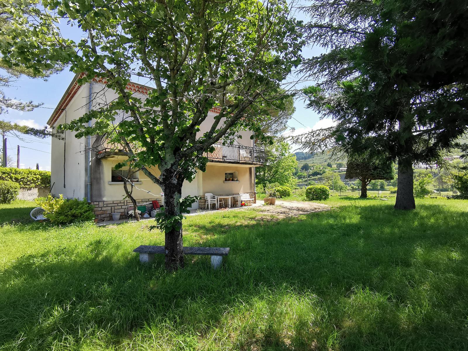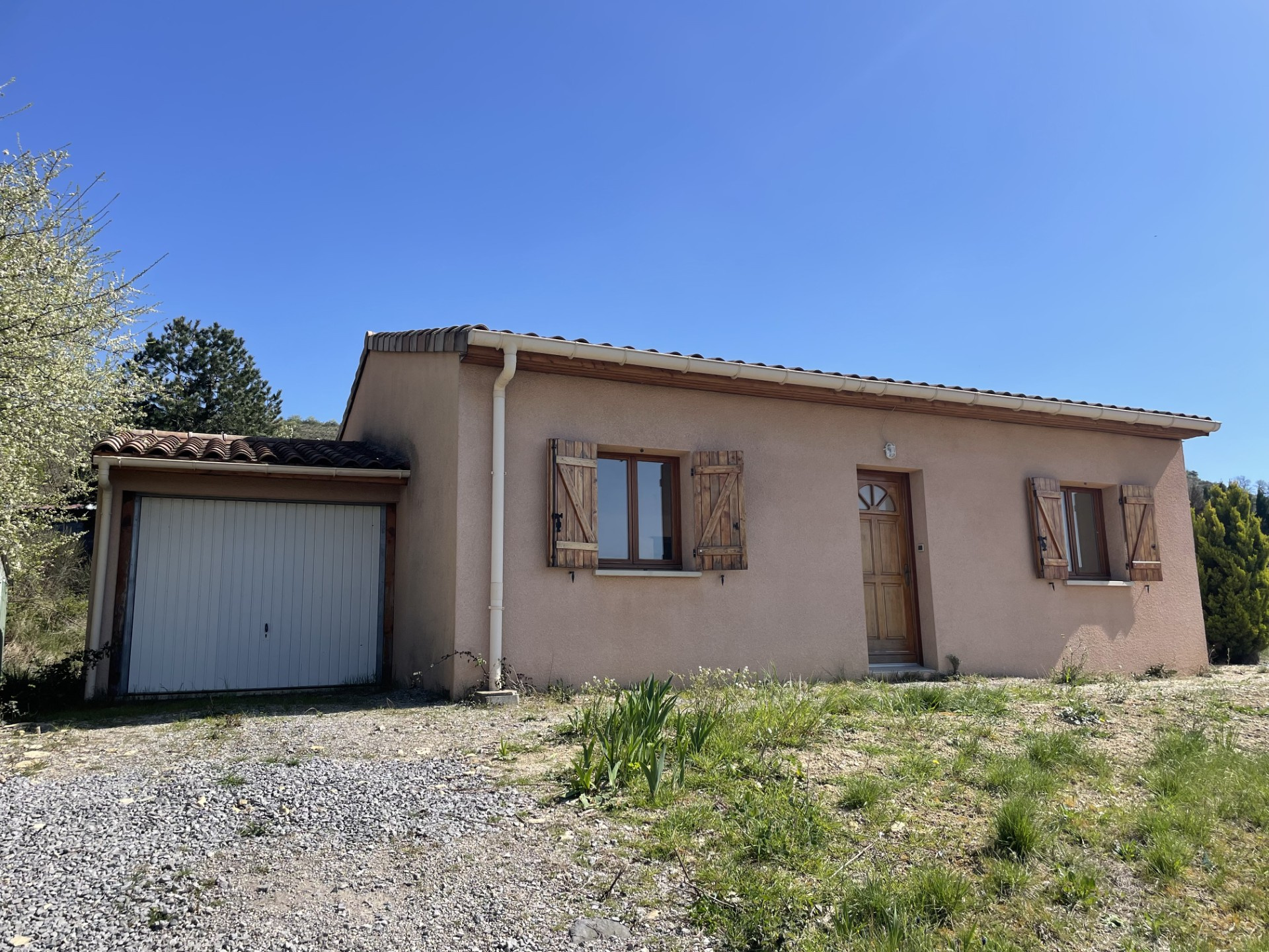 A vendre, sur les hauteurs de Villeneuve de Berg, maison de plain-pied d'environ 79 m2 habitables comprenant : une cuisine ouverte sur séjour, deux chambres, une salle de bains, un wc, un dégagement. Un garage. Cette maison lumineuse est située en positio...