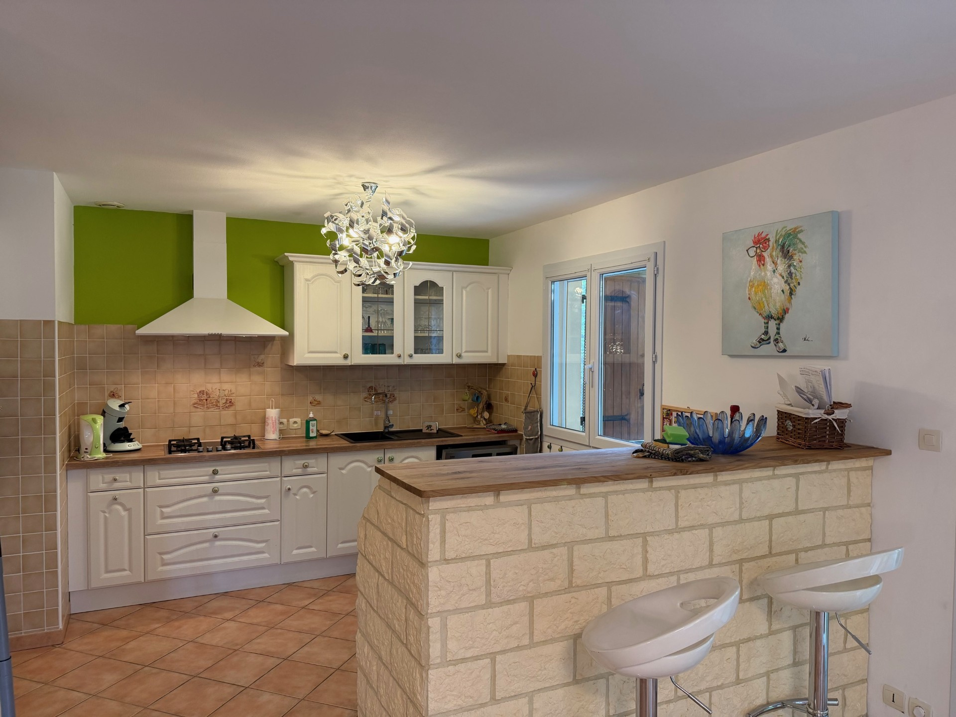 A vendre, Sud Ardèche, Villeneuve de Berg, maison de plain-pied d'environ 115 m2 habitables comprenant une cuisine ouverte sur séjour avec poële à bois, 3 chambres, un bureau, un cellier, un dégagement, une salle d'eau, un wc. Une terrasse. Un garage...