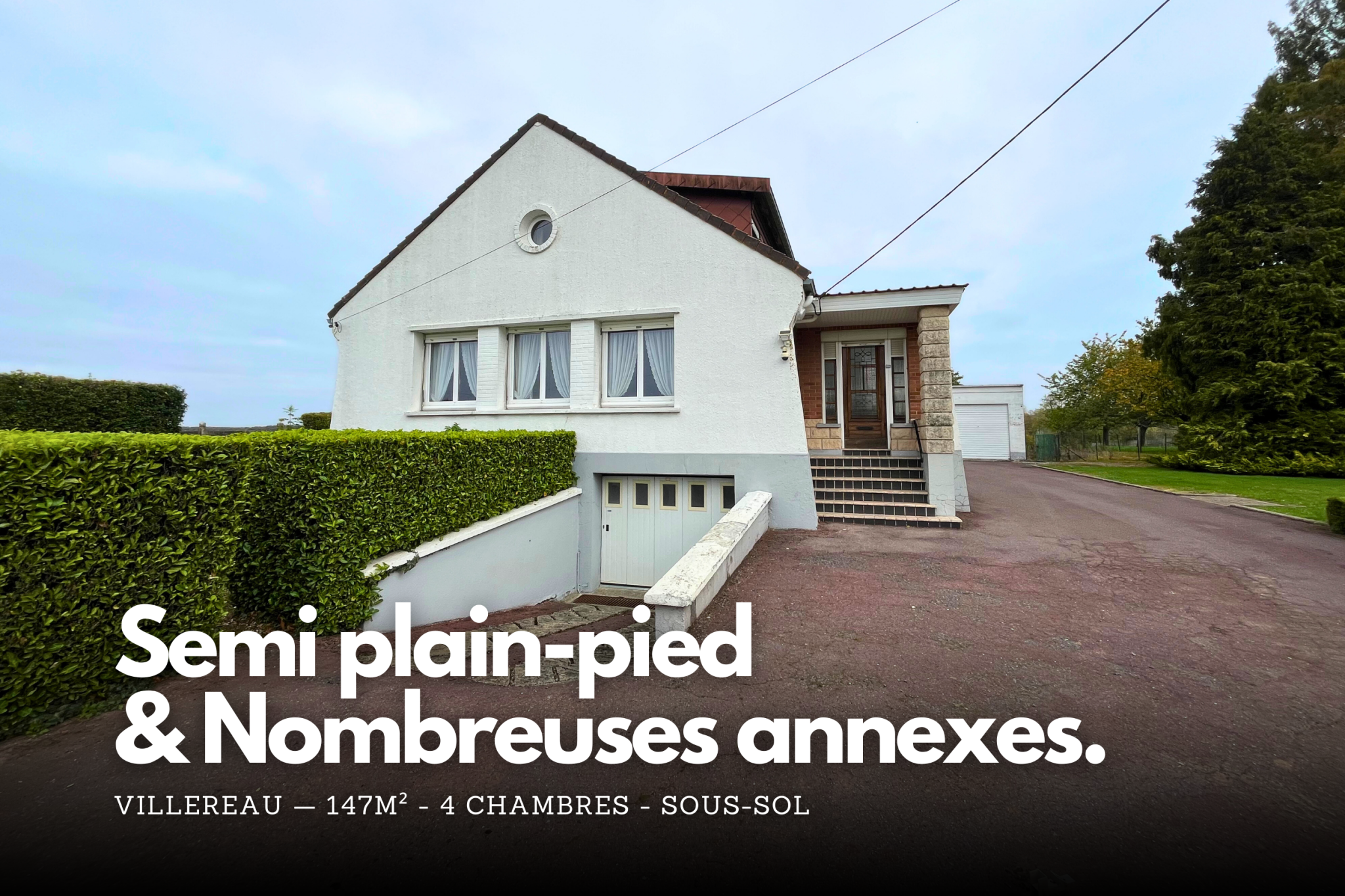 - Maison individuelle de 1960 de 147m2 habitables, boxs et 128m2 d'annexes.