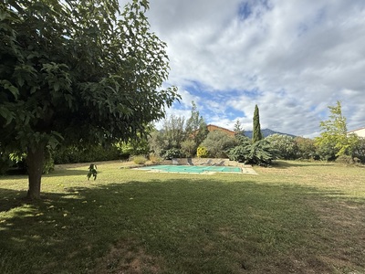 VINCA - Rare et idéalement située dans un cadre spacieux et verdoyant, je vous invite à venir découvrir cette belle villa 4 faces exposée plein Sud, de type T5 (4 chambres) d'environ 128 m² habitables sur terrain clos à l'arrosage de 2 000 m² avec pi...